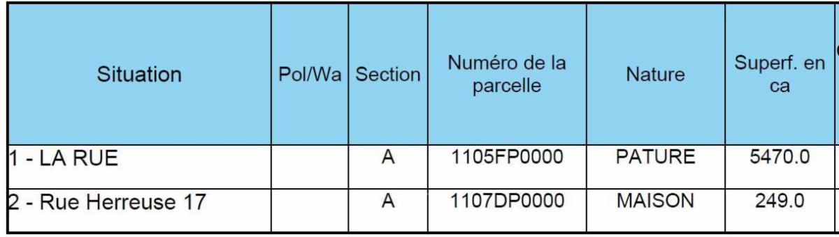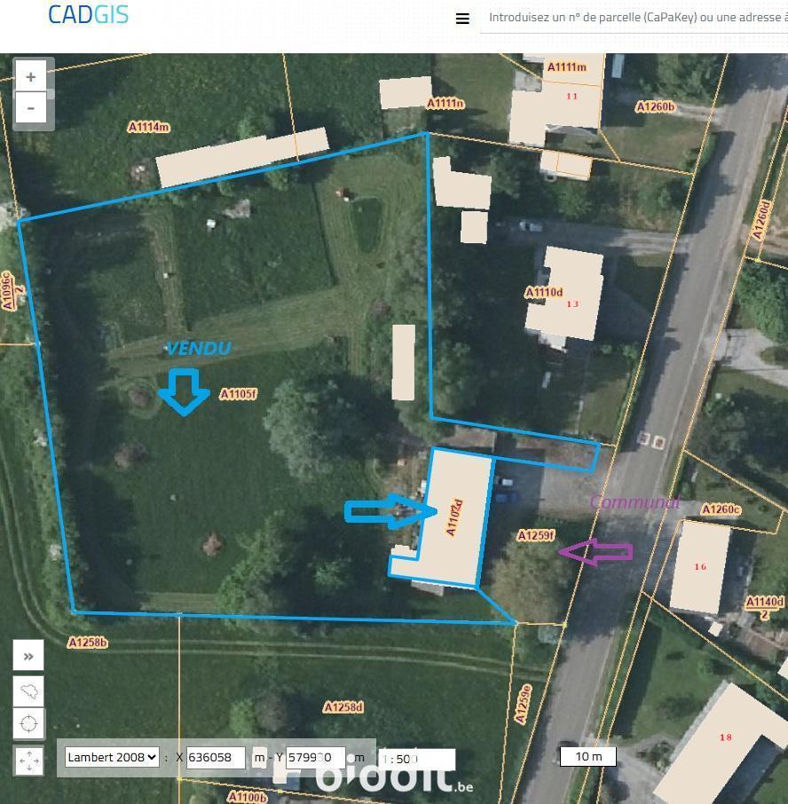 Particularité : la devanture est située sur la parcelle communale 1259F (5 a 13 ca) ; régularisation possible le jour de l’adjudication moyennant 10.926,19 € en sus.