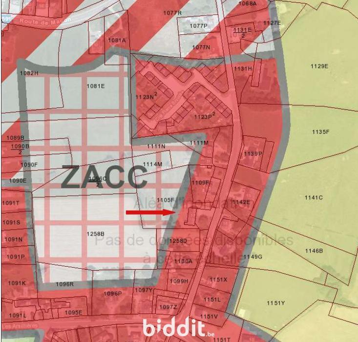 Urbanisme : maison en zone d’habitat ; terrain en zone d’habitat et en ZACC à l’arrière.
