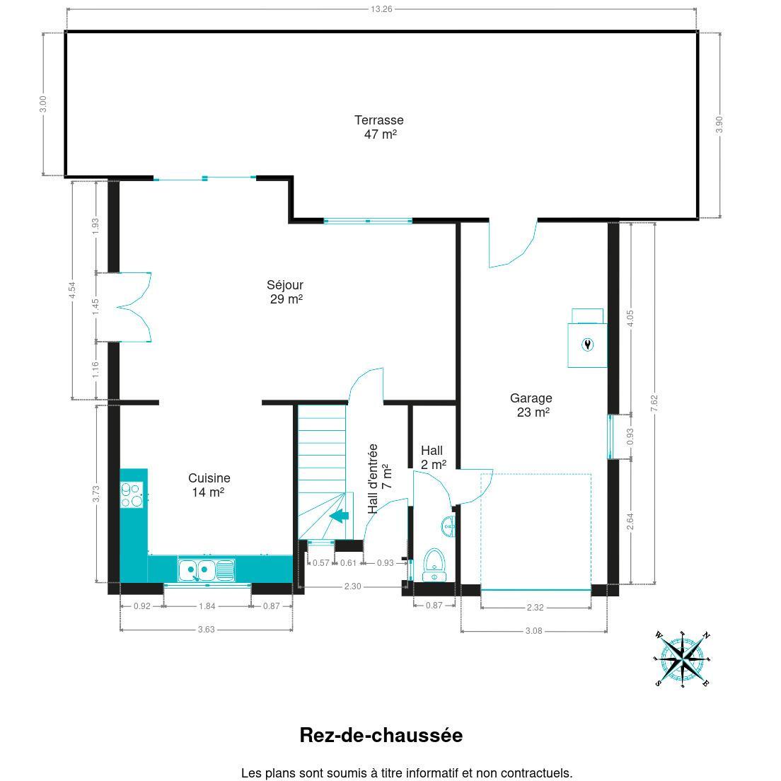 Rez-de-chaussée : cuisine, séjour, grand garage et jolie terrasse ??