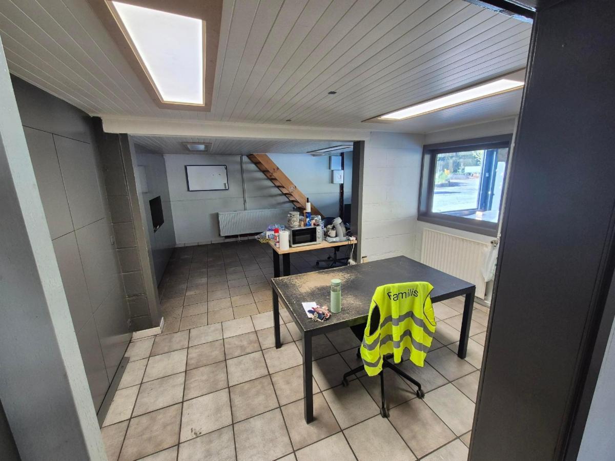- un 2e atelier (+/- 380 m² avec une hauteur sous plafond de 4m, porte sectionnelle électrique de 3,80x4m);
