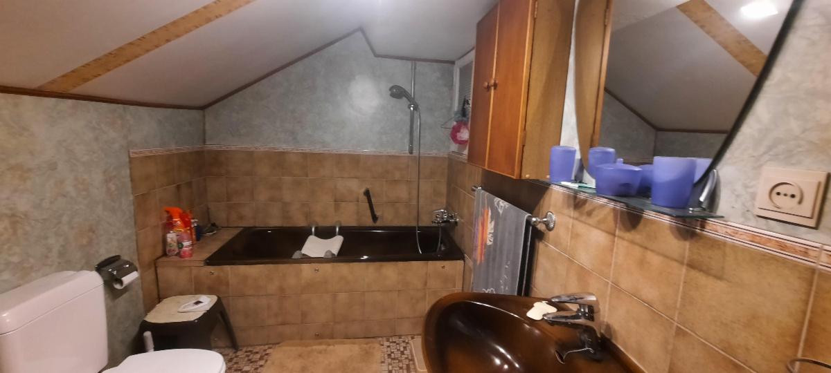 Une salle de bains et une petite chambre mansardée. Deux chambres supplémentaires à l'étage supérieur.