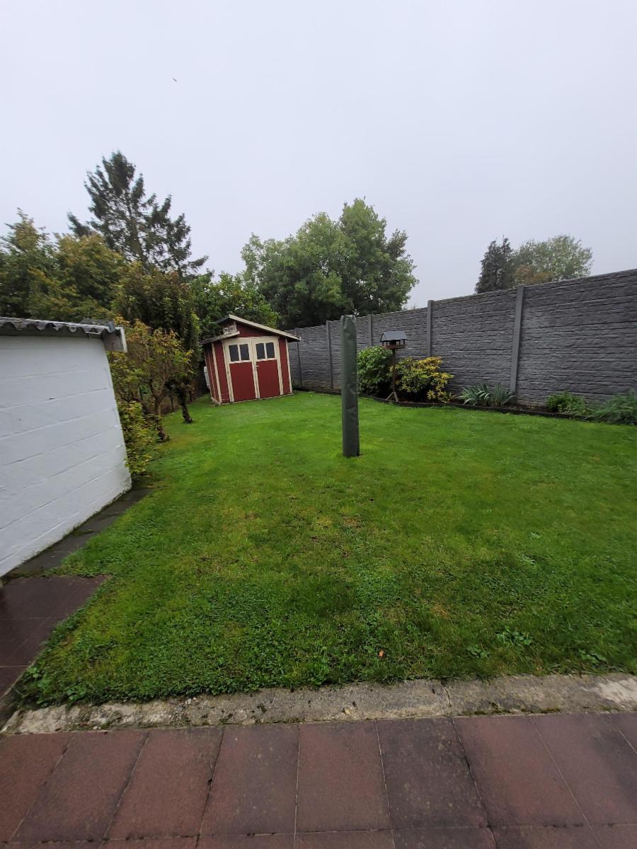 Commodités : Chauffage central au gaz, châssis double vitrage en PVC avec volets, jardin, terrasse, passage sur le côté de la maison ;