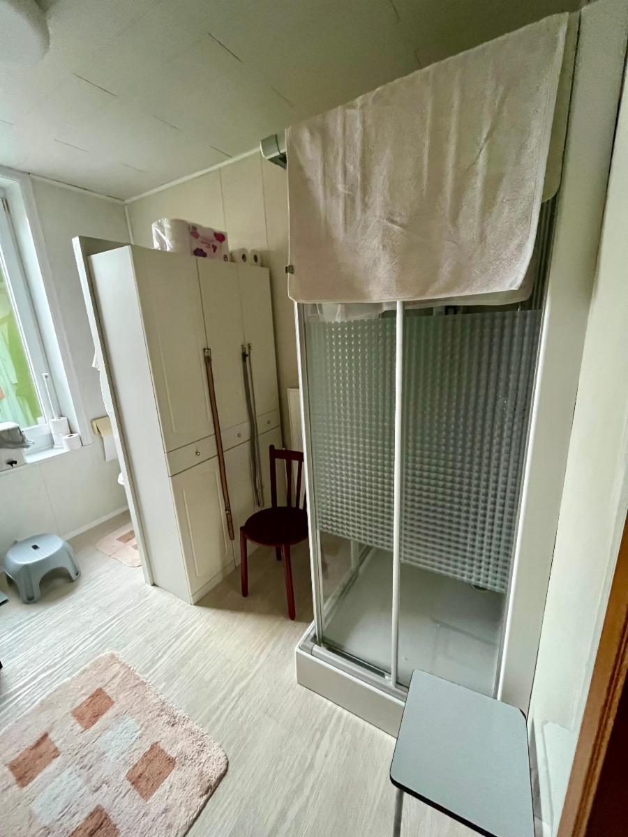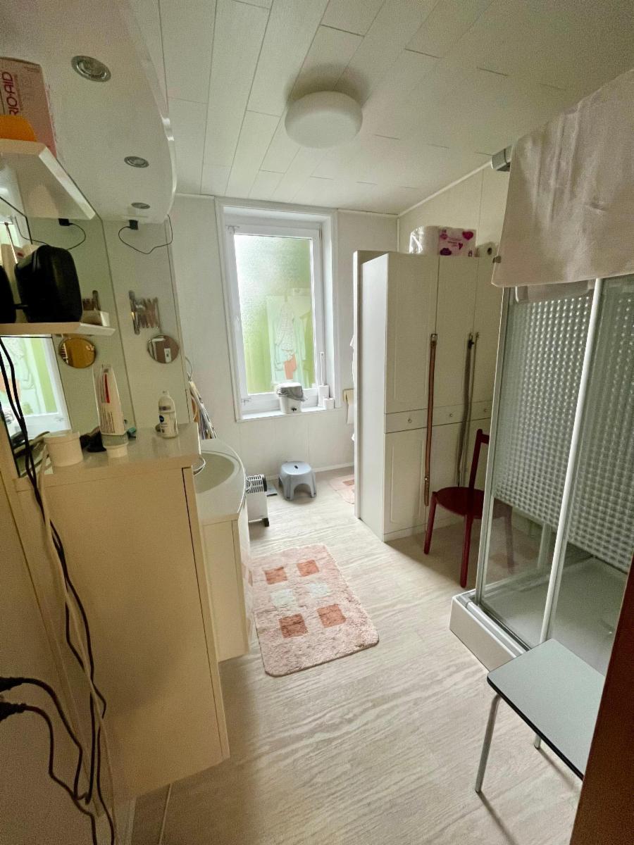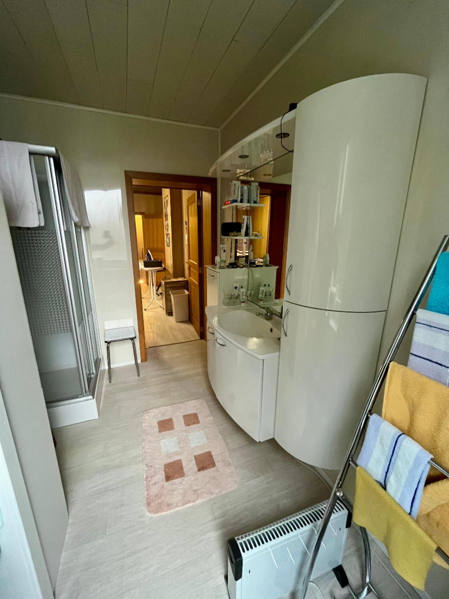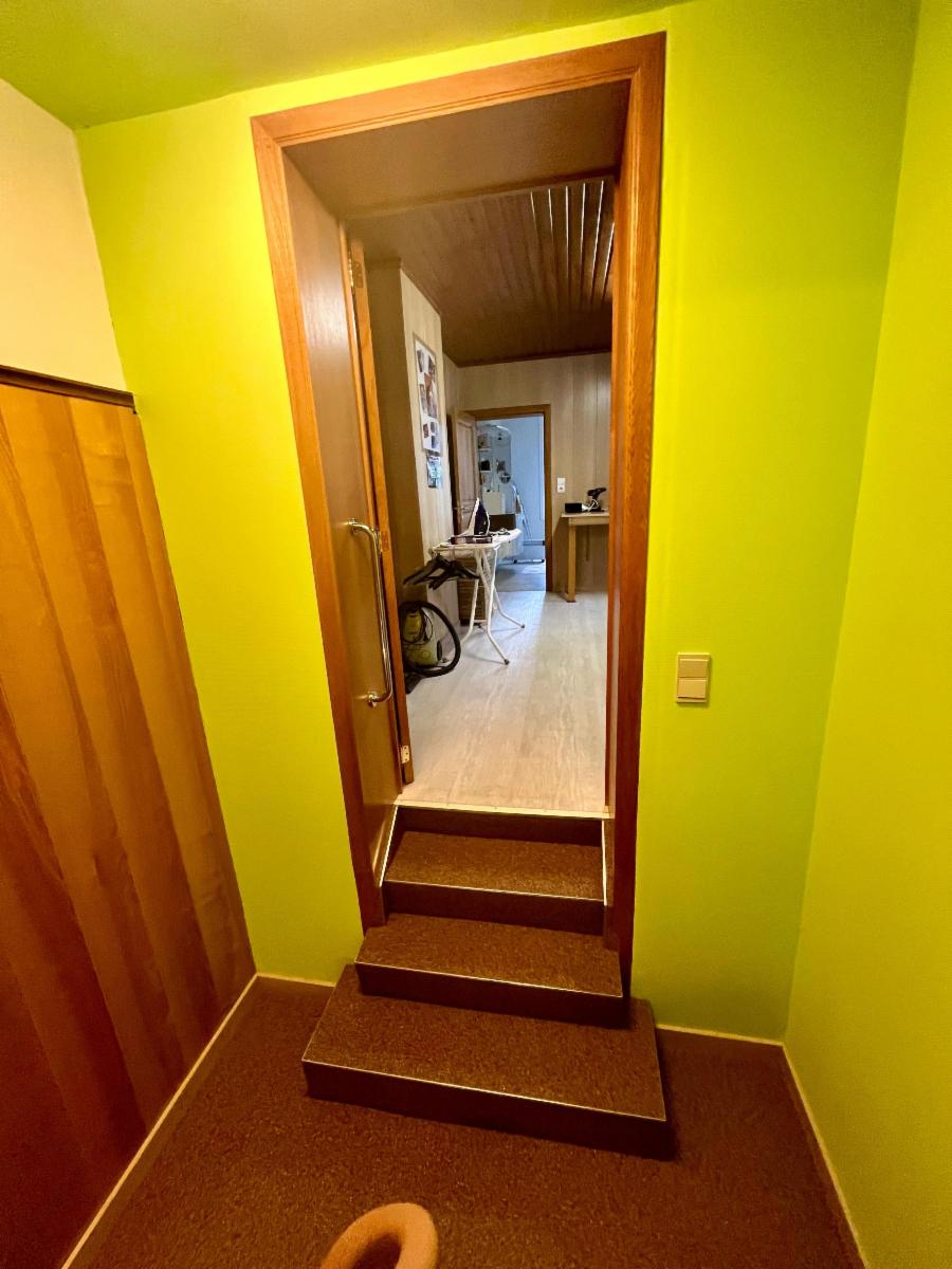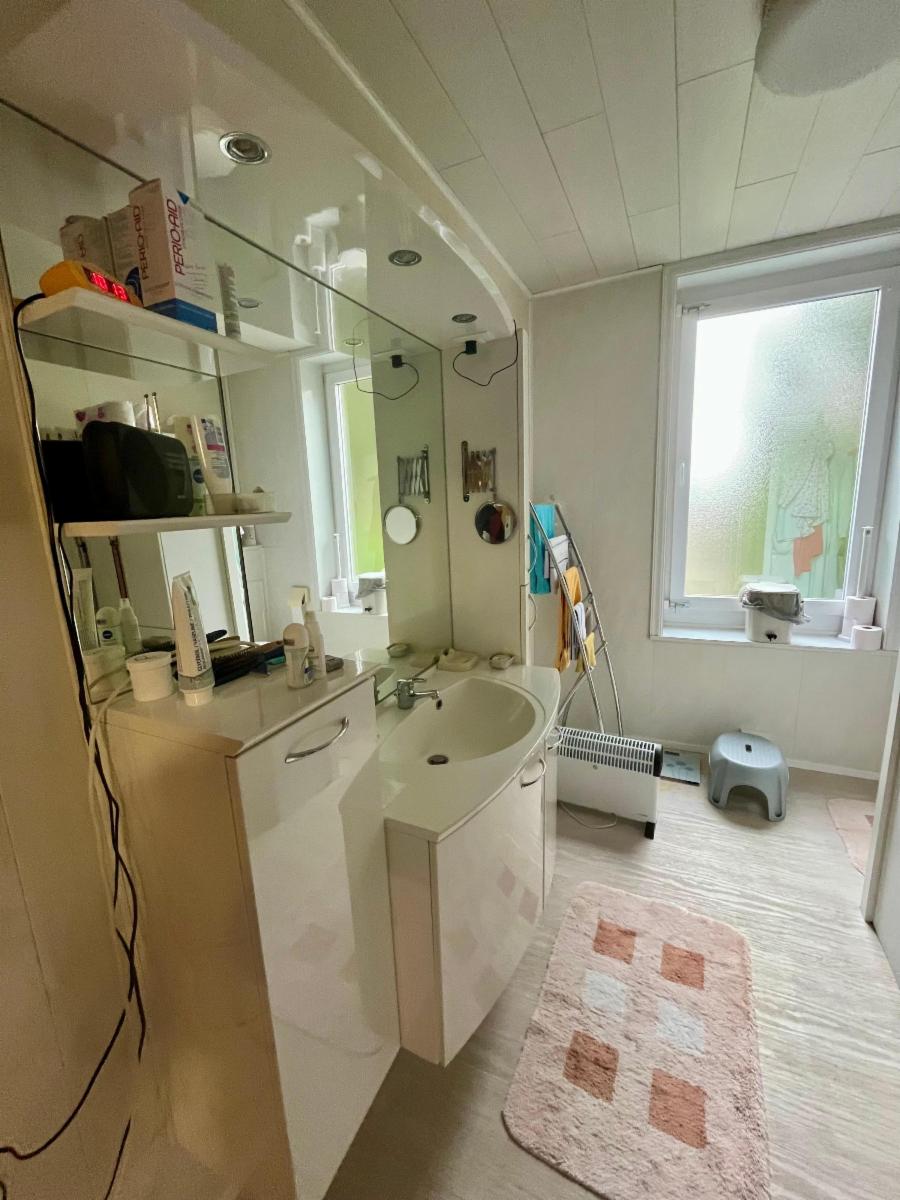 - au demi étage : une chambre avec des placards, une salle de bain