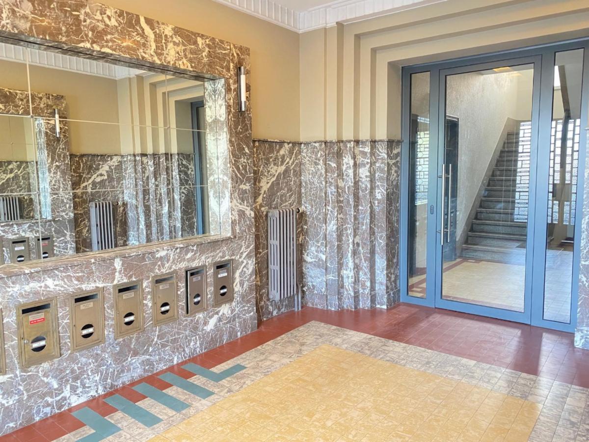 Appartement de caractère dans un bel immeuble d’angle avec aussi bien vue sur l'Ourthe que sur la Meuse. L'appartement, d'une superficie totale approximative, balcons compris, de 145,50 m², est situé au premier étage et comprend 2 chambres et 2 caves.