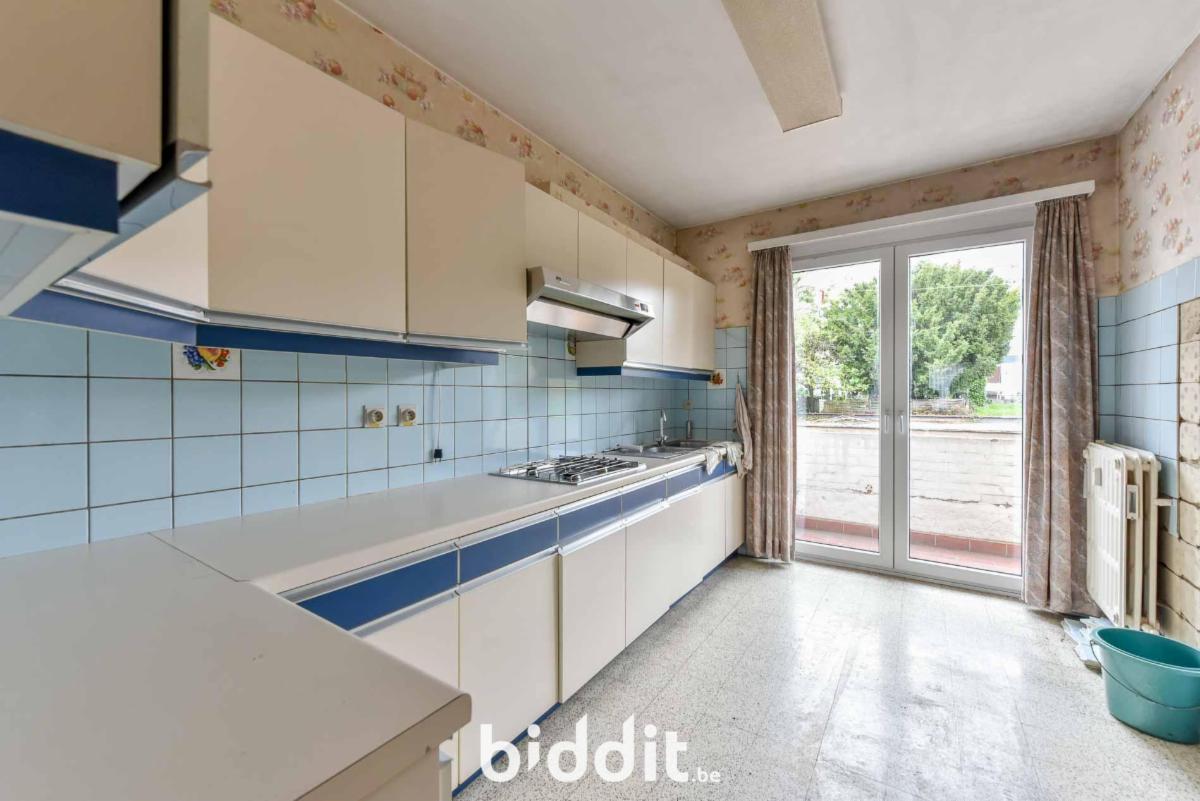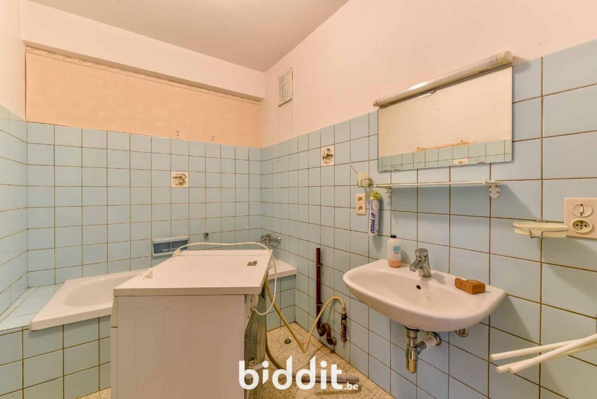 Un appartement à rafraîchir, au centre de Strombeek-Bever, Kasteelstraat 21, consistant en un hall, vestiaire, salle de bains, W.C., cuisine, living et une chambre avec terrasse, une cave et un garage. G score: C P score: C