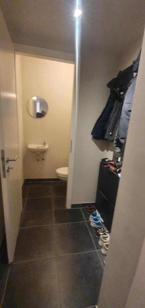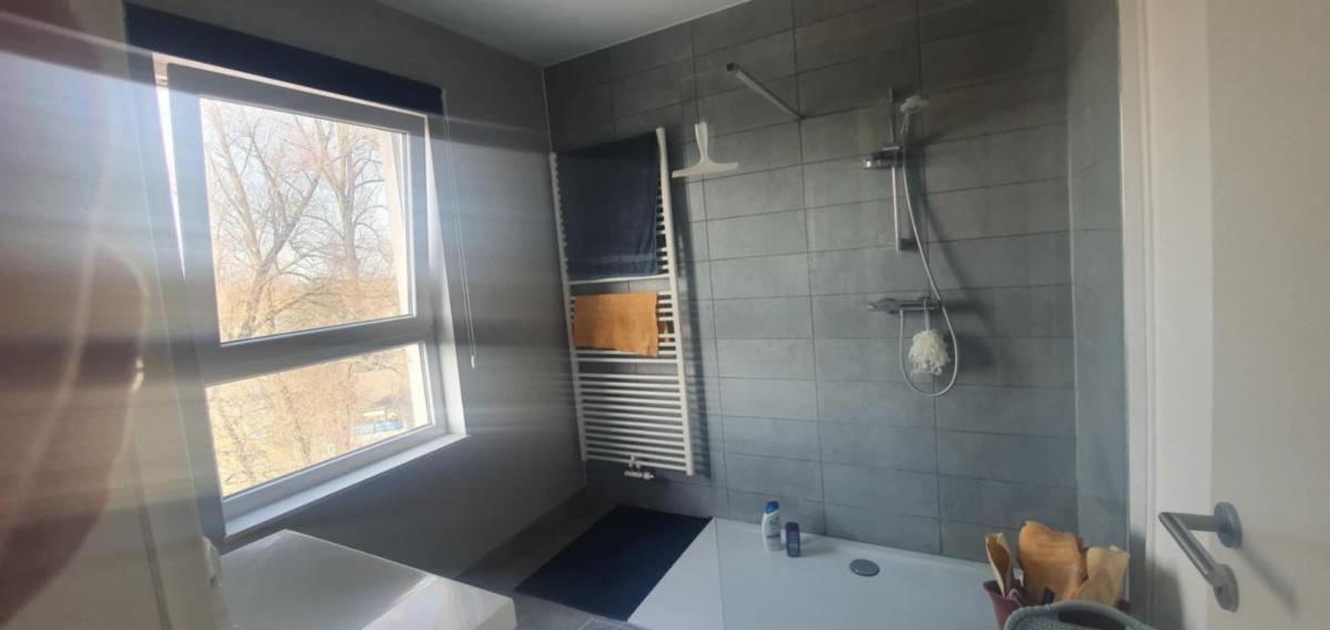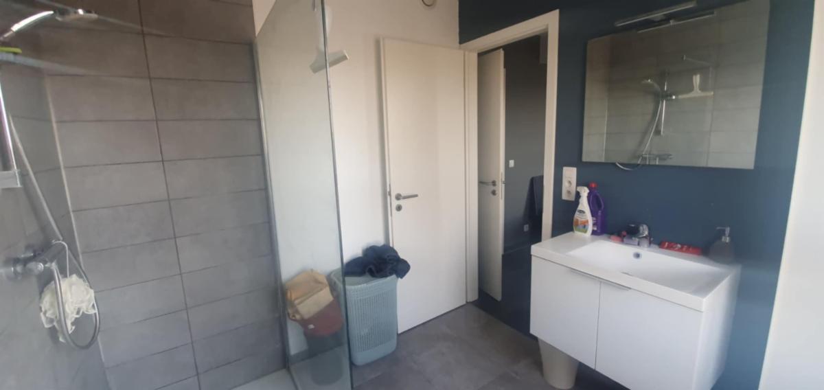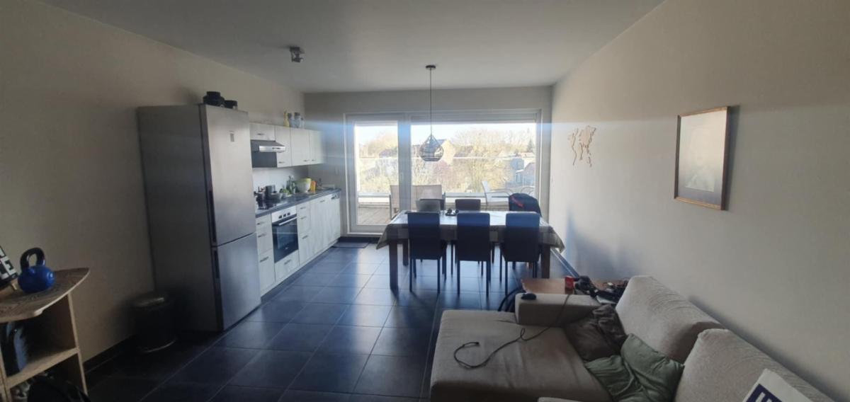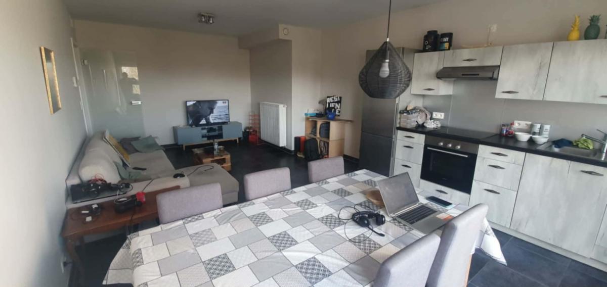 Hall et hall de nuit, entrée portée blindée, living-salon (+/- 30 m²), cuisine ouverte (taque vitro, four, hotte, lave-vaisselle, frigo de marque SIEMENS), belle terrasse orientée SUD-EST en prolongement du living (+/-14 m²) offrant une magnifique vue sur le Beffroi et la Collégiale, 1 Chambre (+/- 14 m²), salle de bains (douche/lavabo +/- 8 m²), local technique/cellier (+/- 4 m²), wc et vestiaire séparé, ventilation double flux, screen électrique dans le living.
