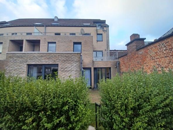 A VENDRE – APPARTEMENT au rez-de-chaussée, avec garage fermé et sécurisé, 3 chambres, terrasse et jardin privatifs, grand jardin commun, dans la Résidence Matisse, à proximité immédiate de la Gare rénovée de Mouscron, et du Centre-Ville