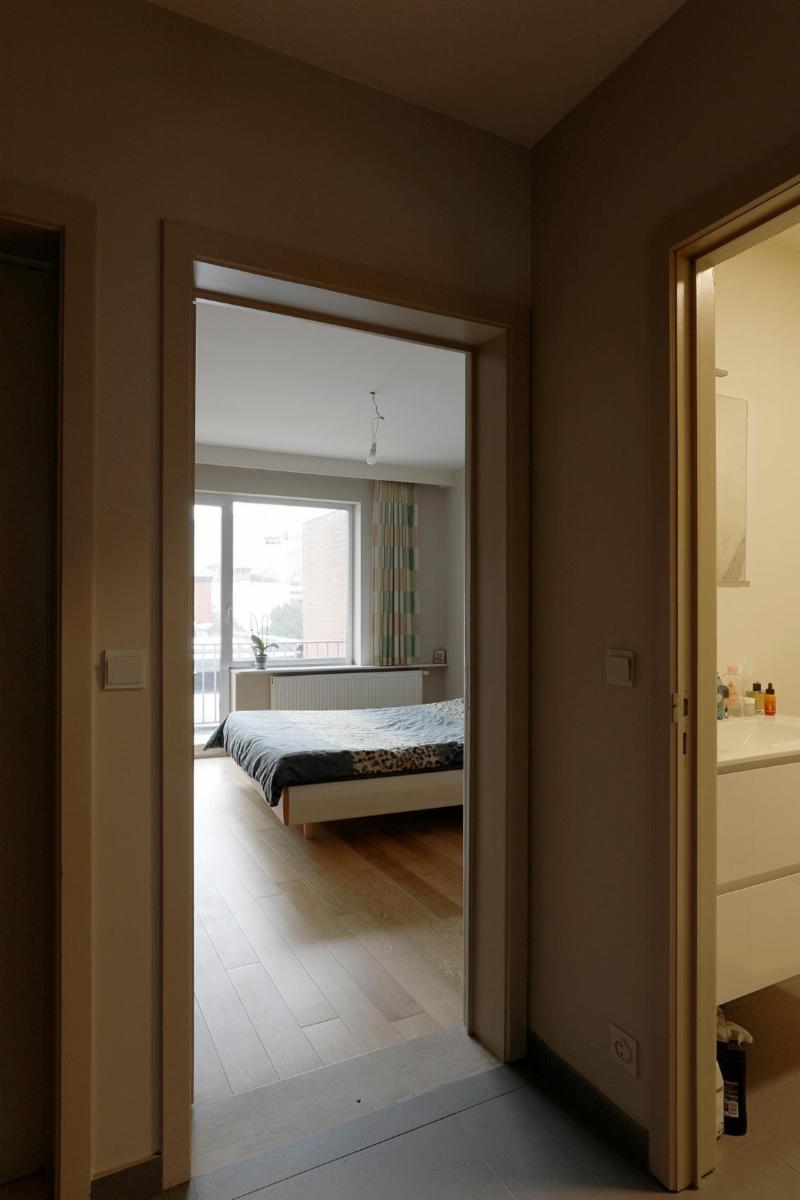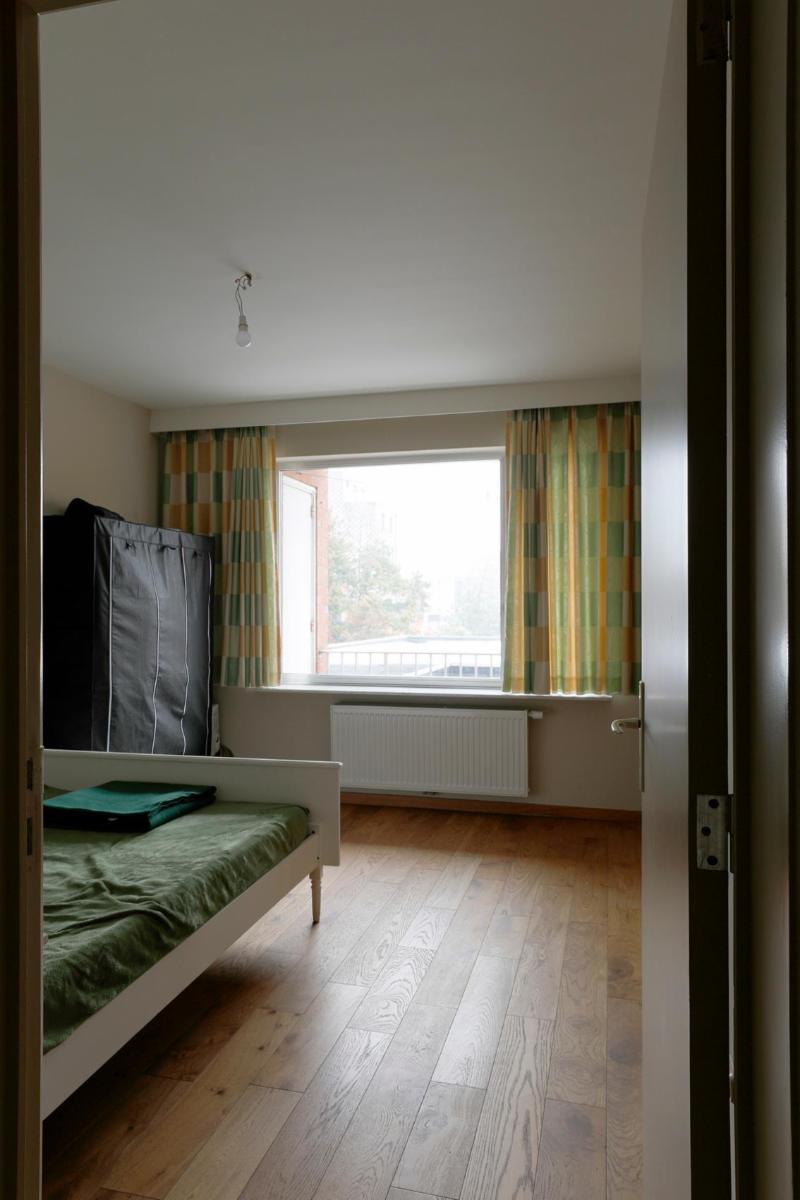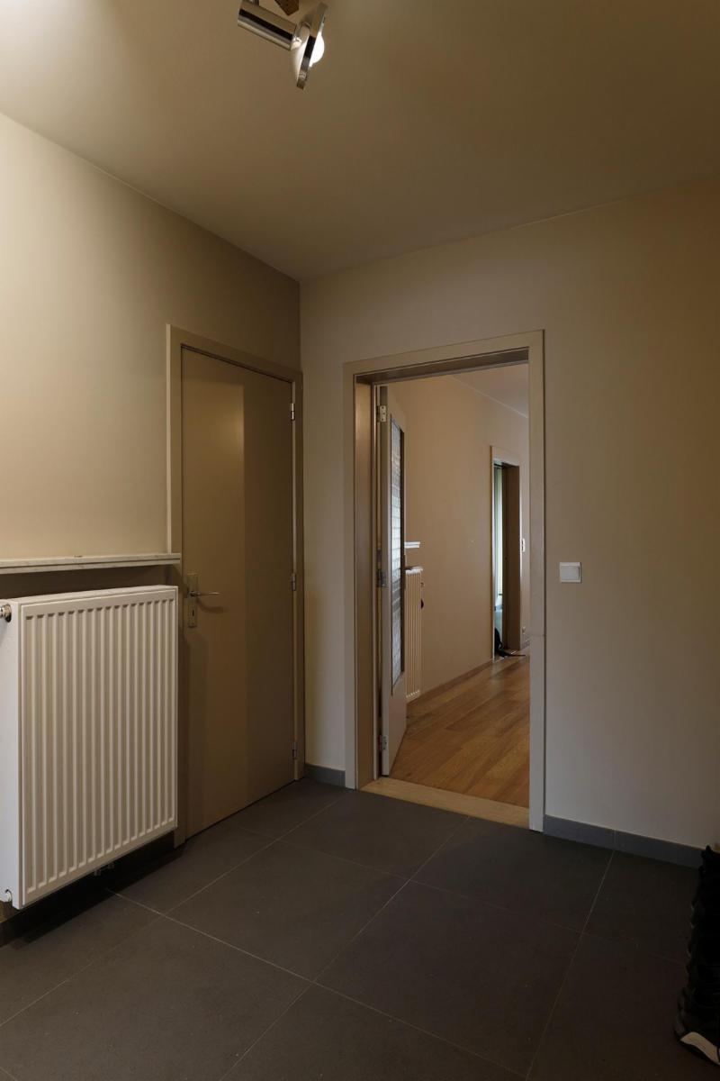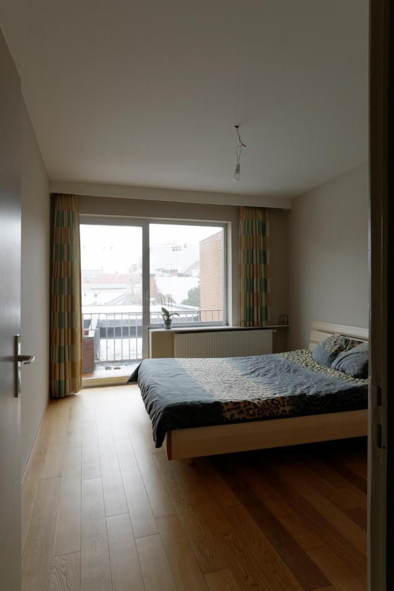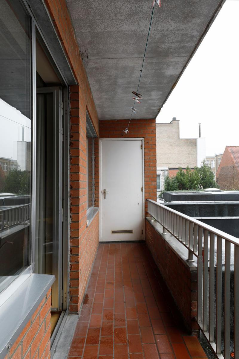 Situé dans le centre de Roulers, cet appartement spacieux et lumineux se compose d'un hall d'entrée avec un sol neuf, d'un grand salon rectangulaire en parquet dont la fenêtre donne sur le parc situé de l'autre côté de la rue, avec une cheminée encastrée et une porte coulissante donnant accès à la cuisine blanche entièrement rénovée. Cette cuisine, dotée d'un sol neuf, comprend un four encastré, un micro-ondes, une plaque de cuisson électrique, un évier et un grand réfrigérateur-congélateur indépendant, ainsi qu'une petite terrasse. À côté de la cuisine se trouve un débarras séparé abritant la chaudière à gaz rénovée. Il y a une salle de bains entièrement rénovée avec douche à l'italienne, un lavabo avec meuble et miroir, et depuis le hall d'entrée, on accède également à des toilettes séparées. Cet appartement dispose de deux grandes chambres avec parquet, dont les fenêtres donnent sur l'arrière de l'appartement. La chambre de droite donne accès à la terrasse qui s'étend sur toute la longueur des deux chambres. Les compteurs se trouvent au sous-sol, où se trouve également un débarras pour l'appartement. À l'arrière de l'immeuble se trouve le garage avec porte électrique.