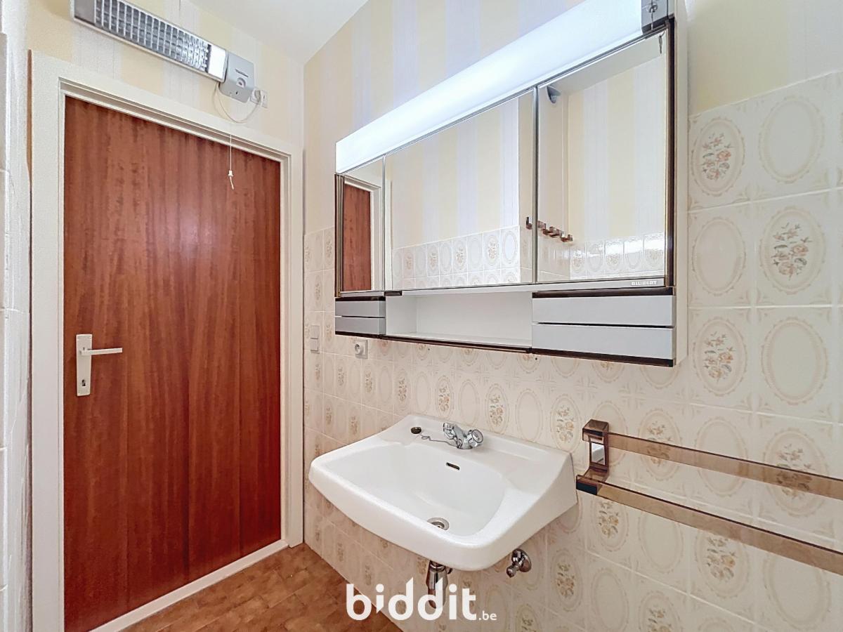 Résidence « SHANNON » à Koksijde (Oostduinkerke), Leopold II Laan 185/187 : appartement E-2, 2e étage, comprenant : porte d’entrée, hall d’entrée avec vestiaire, salle de bains avec baignoire, lavabo et bidet, WC, cuisine, une chambre avec terrasse à l’arrière et le séjour avec terrasse à l’avant, et place de parking n° 4, située à l’arrière de l’immeuble. Disponible immédiatement après paiement. Mesures administratives inscrites dans le registre des mesures : non. G score: A P score: B