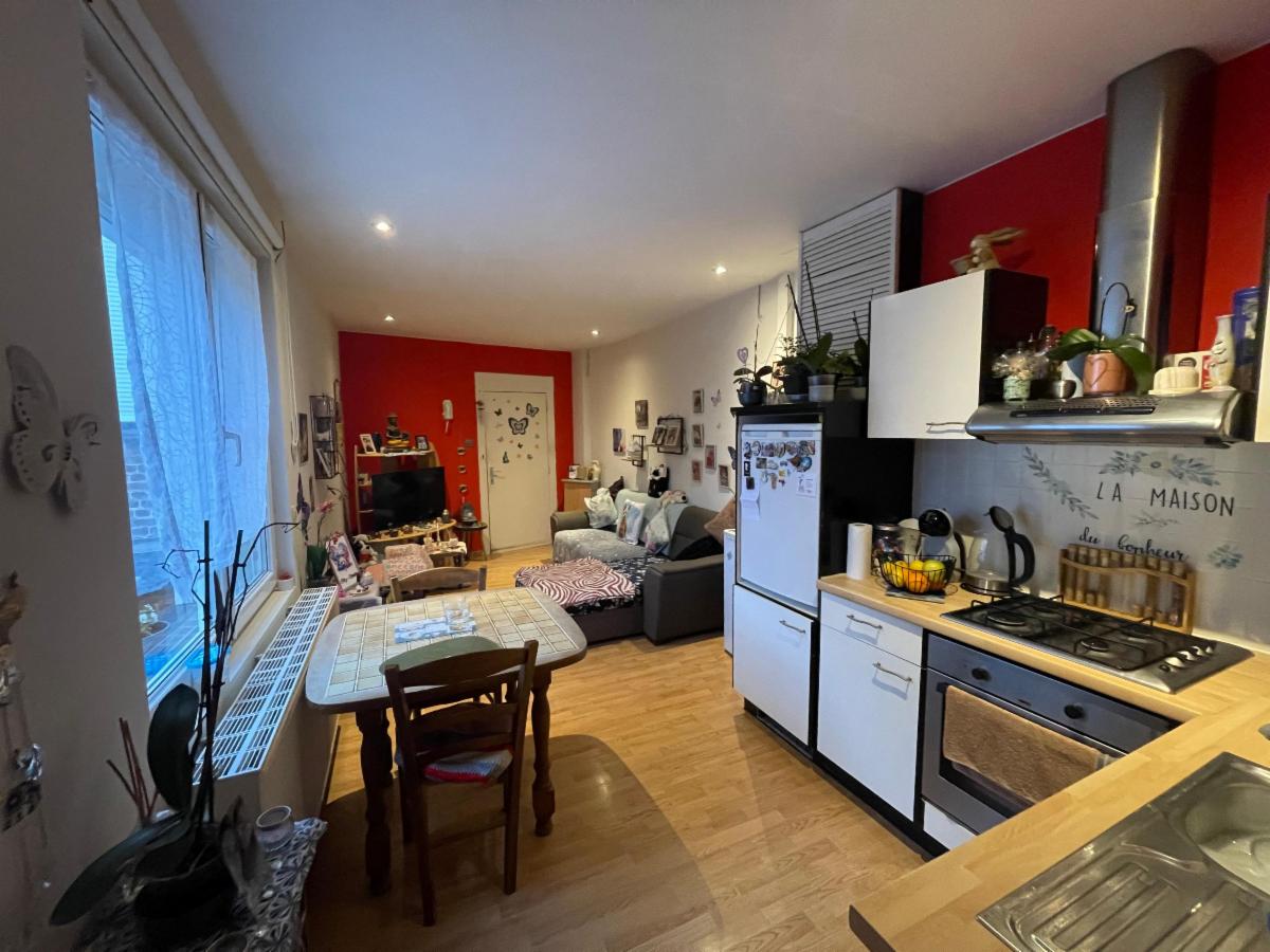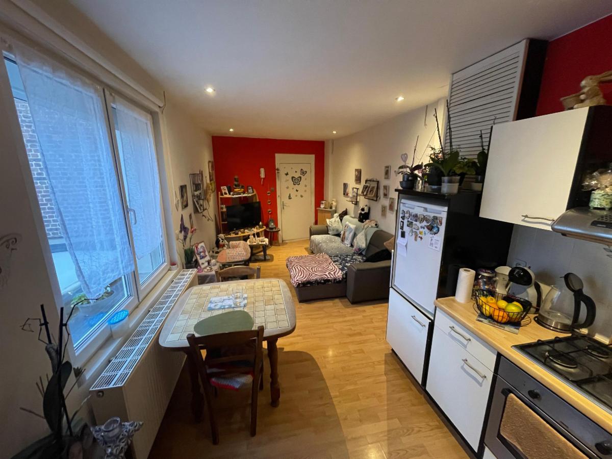 Appartement (loué) d’environ 50 m² au 1er étage avec garage, sis à TOURNAI comprenant :