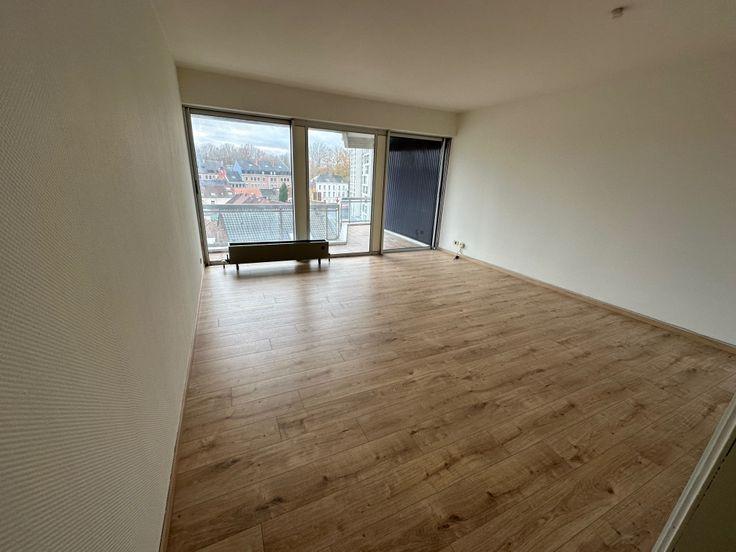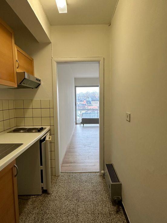 Appartement comprenant : hall d’entrée, wc, cuisine, living lumineux avec baie vitrée offrant une large vue dégagée sur la Ville de Tournai et son patrimoine historique (Cathédrale, Beffroi, classés à l'UNESCO), salle de bain (baignoire-lavabo), chambre, grande terrasse. La Résidence dispose d'un ascenseur.