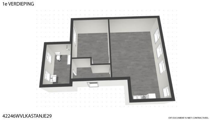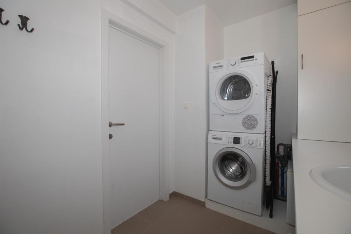 L’aménagement comprend un hall d’entrée, une salle de douche avec raccordement pour machine à laver, un séjour lumineux avec cuisine ouverte, ainsi qu’une chambre offrant une vue sur certains des plus anciens bâtiments de Bruges. La cave privative, accessible via le local à vélos commun, offre un espace de rangement supplémentaire.