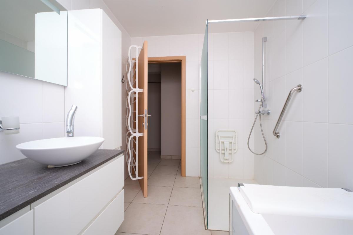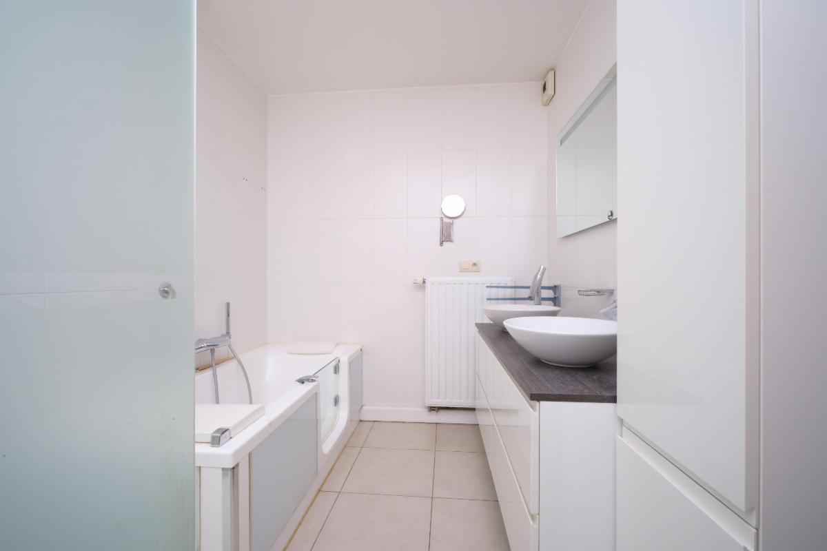 La salle de bain, généreuse et élégante, offre le luxe rare d’un lavabo double, d’une baignoire pour ralentir le temps et d’une douche pour les matins pressés.