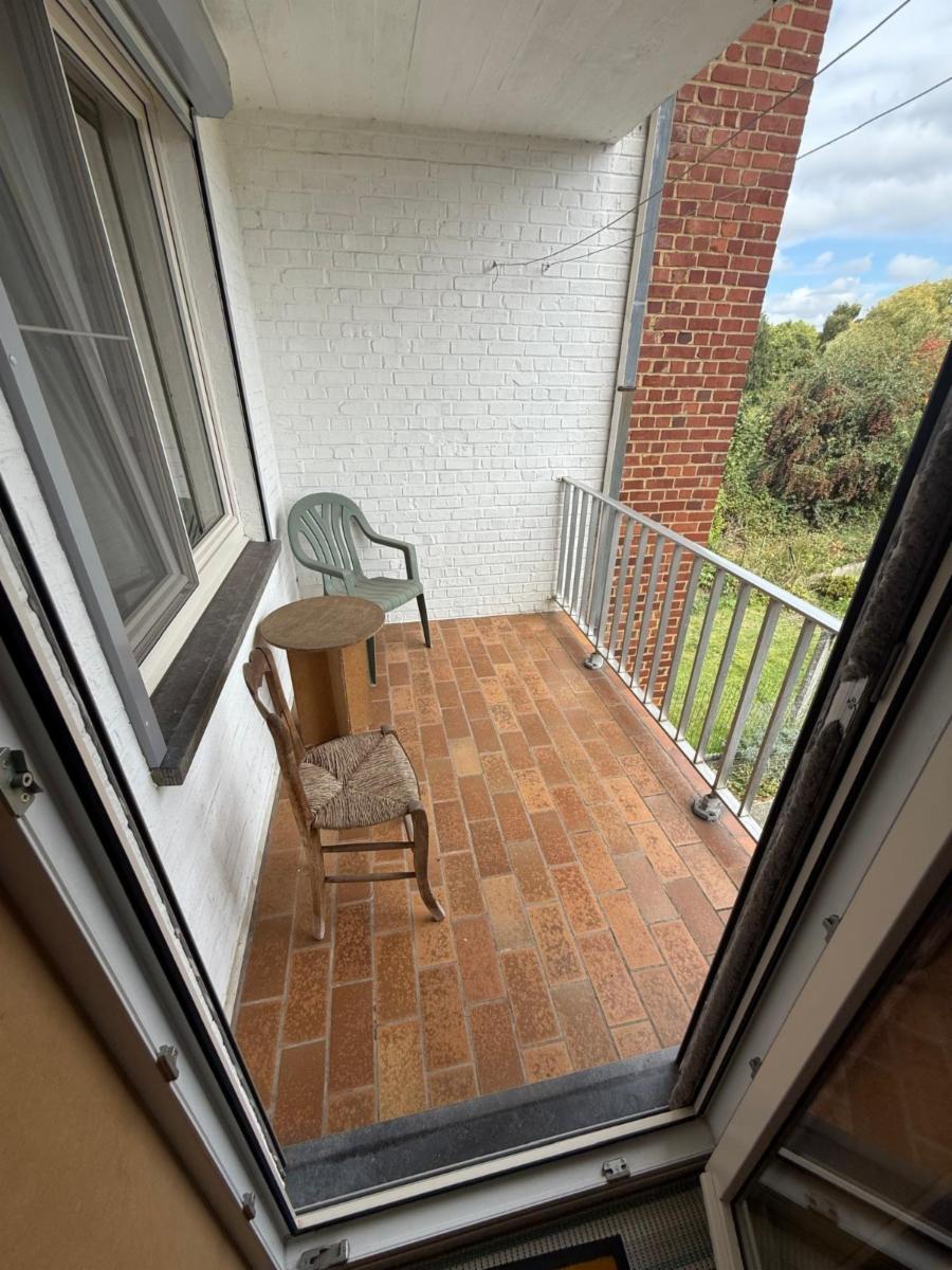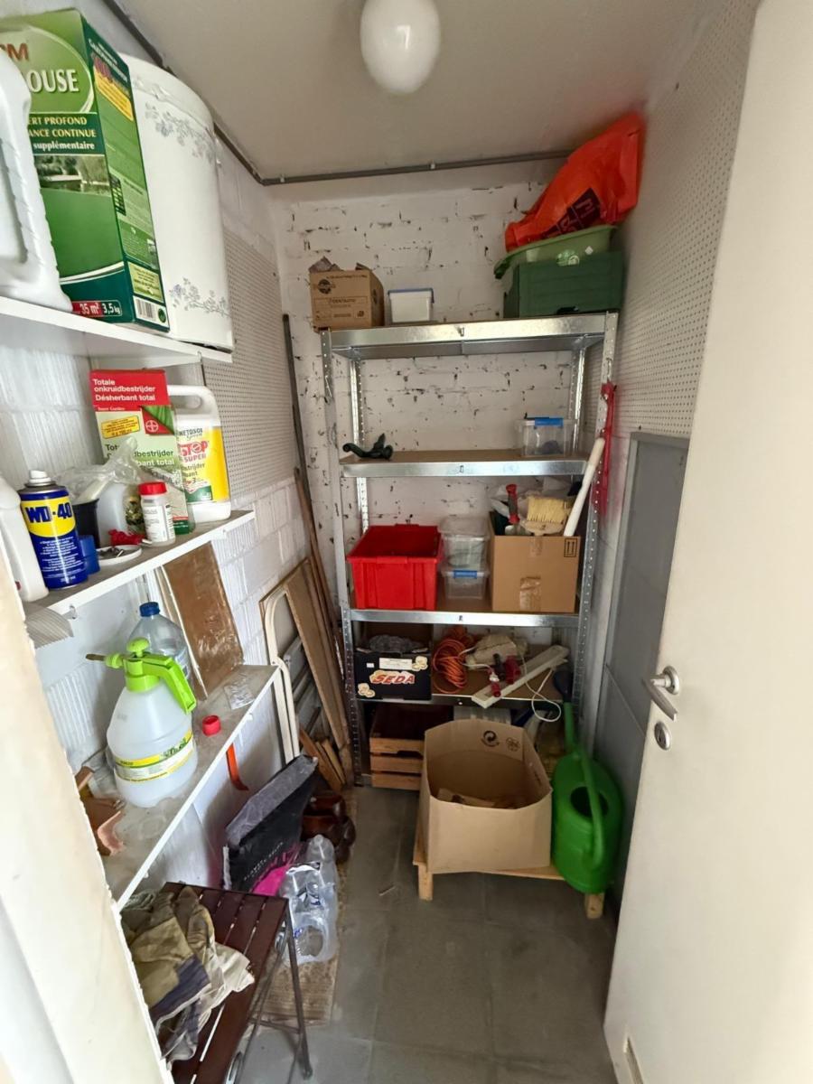 Hall d’entrée, petit vestiaire et wc, cuisine équipée, living (salon-salle à manger), hall de nuit, salle de bains, deux chambres (dont une avec placard), terrasse.