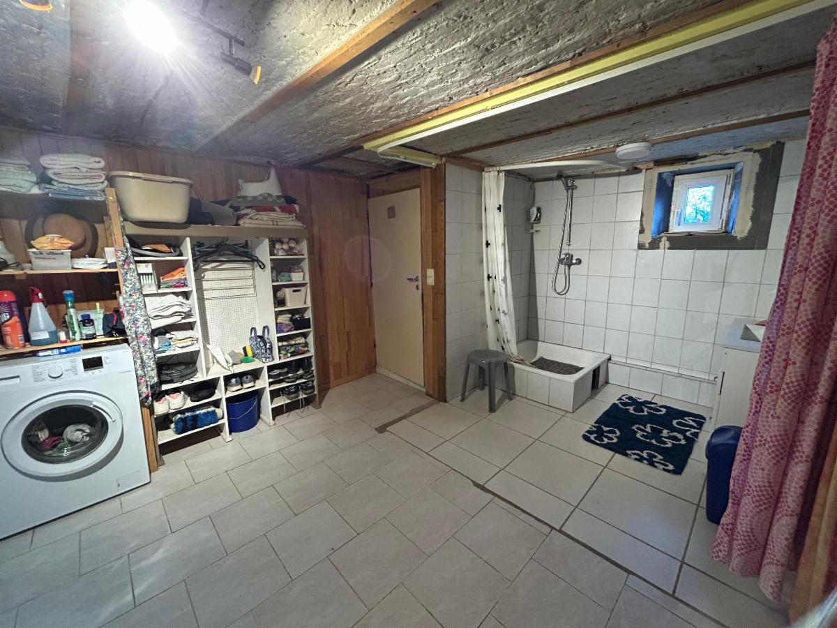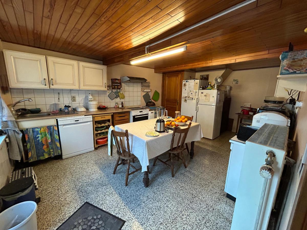 Rez-de-chaussée : hall d’entrée, salon – salle à manger, cuisine semi-équipée, arrière-cuisine avec accès au grenier/mezzanine, buanderie avec douche et WC.