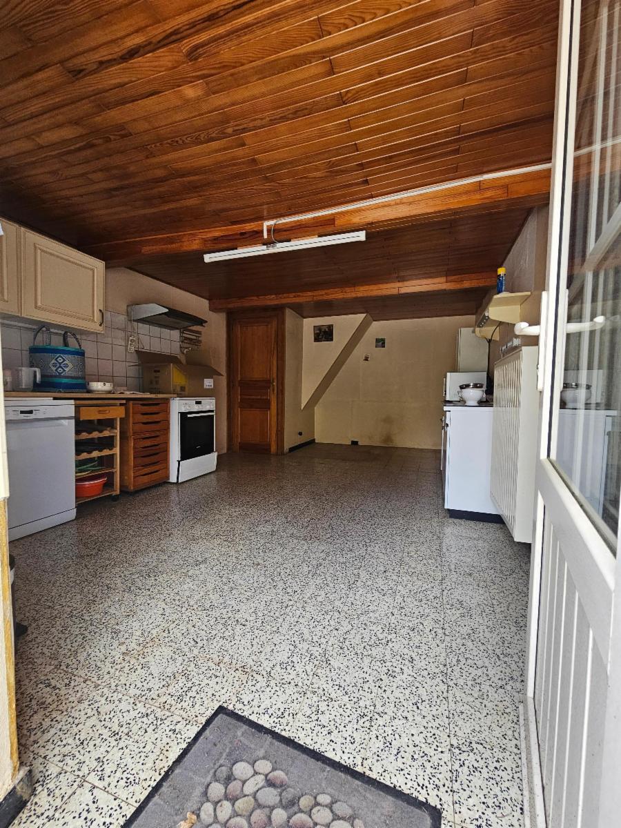 Rez-de-chaussée : hall d’entrée, salon – salle à manger, cuisine, arrière-cuisine avec accès au grenier/mezzanine, buanderie avec douche et WC, véranda