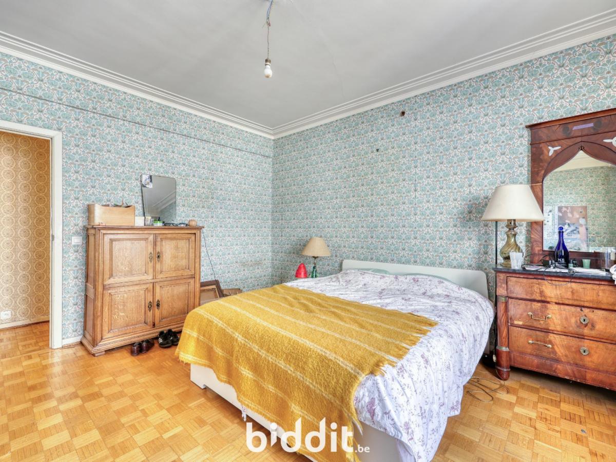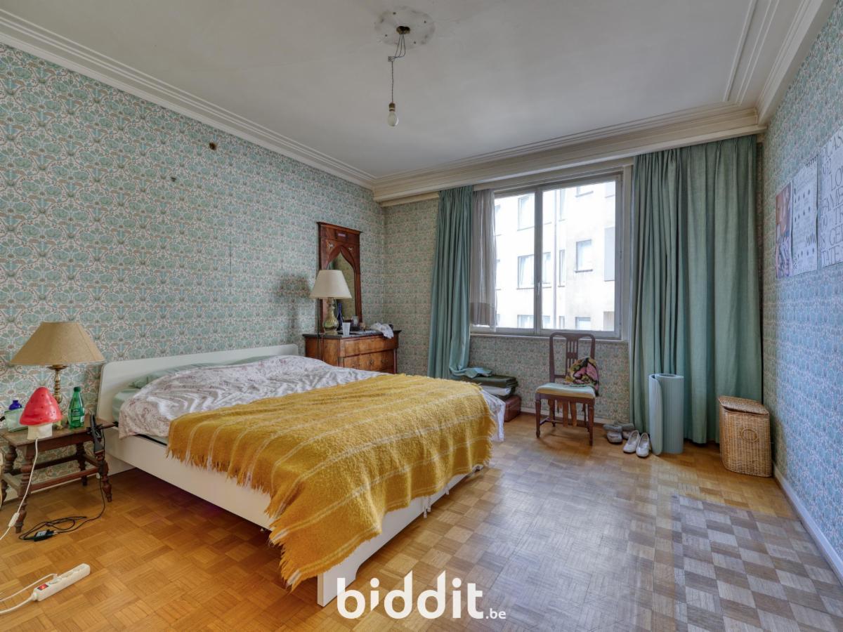 situé au 1er étage d’un immeuble de caractère, avenue Montjoie 228A à Uccle. Très bonne situation. L’appartement se compose d’un hall d’entrée avec vestiaire et toilette, un large séjour avec feu ouvert et parquet, une cuisine équipée avec office et un balcon arrière, deux chambres arrière, une salle de bain ( bain, lavabo, toilette, bidet). Un box garage et une cave complètent ce bien. L’appartement est à rafraîchir.