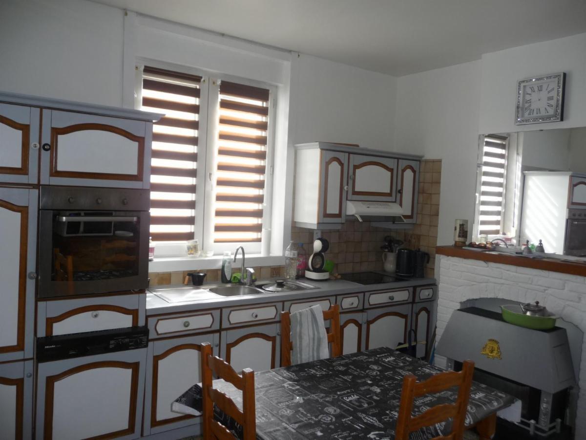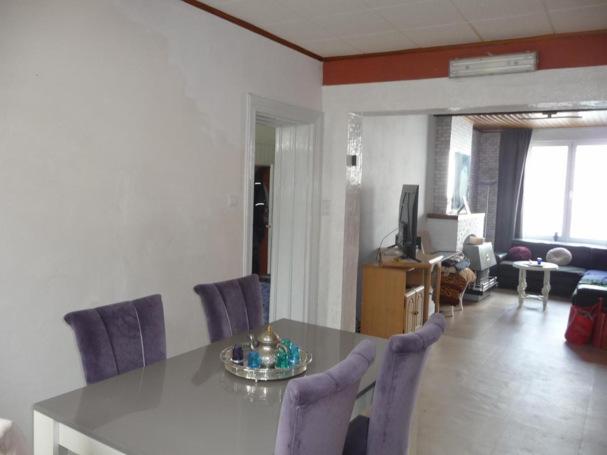 Située au pied du Bois du Cazier, cette maison est idéalement placée à la fois au calme et à proximité des voies rapides, commerces et écoles. Composition : salle à manger, salon, cuisine équipée, salle de bains avec wc, véranda, à l'étage, palier de nuit avec wc séparé, 3 chambres. Commodités : volets, DV en pvc, poêles au gaz, cave, cour, grenier, 3 garages avec porte électrique, accès à la rue par l'arrière aussi.