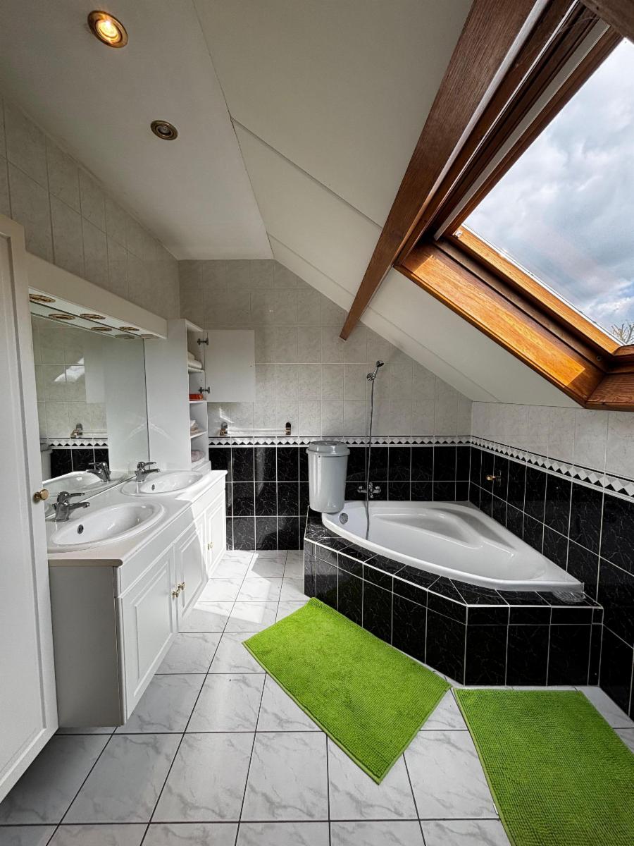 • Au rez-de-chaussée : hall d’entrée, bureau, living, cuisine, salle de douche, WC et buanderie