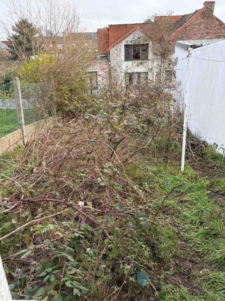 Immeuble de rangée à restaurer comprenant : hall, living + pièce avant, cuisine, salle de bain, 2 chambres, grenier, caves, petit jardin