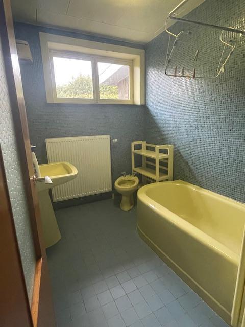 Belle villa de plain-pied comprenant corridor, wc, salon, salle à manger, bureau, cuisine semi-équipée, salle de bains, 2 chambres, cave, garage, grand jardin (environs 10 ares), terrasse, passage latéral. Chauffage central mazout.