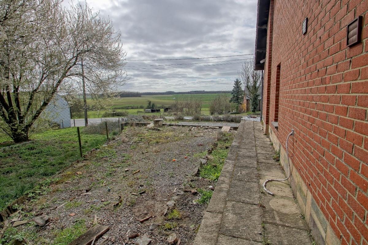 Chauffage central au mazout, citerne d’eau de pluie, garage 1 voiture et vaste parking à l’avant complètent l’ensemble.