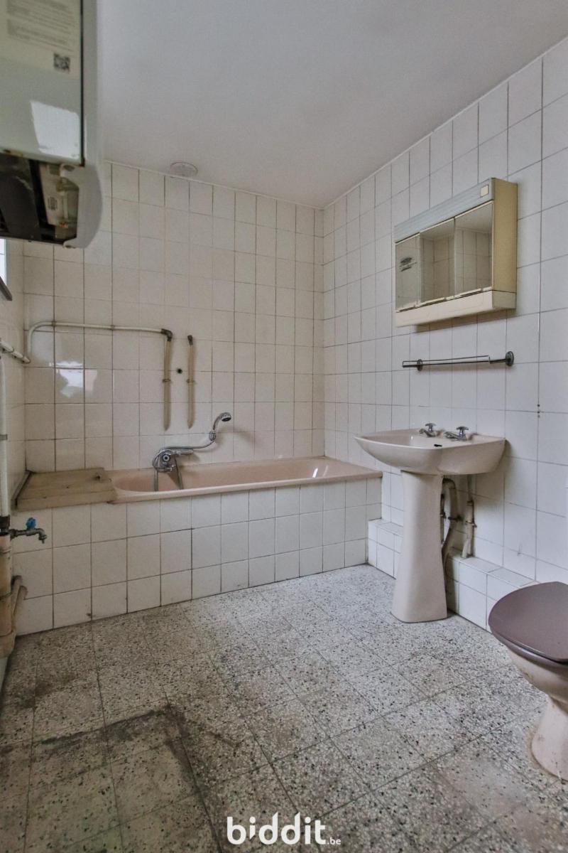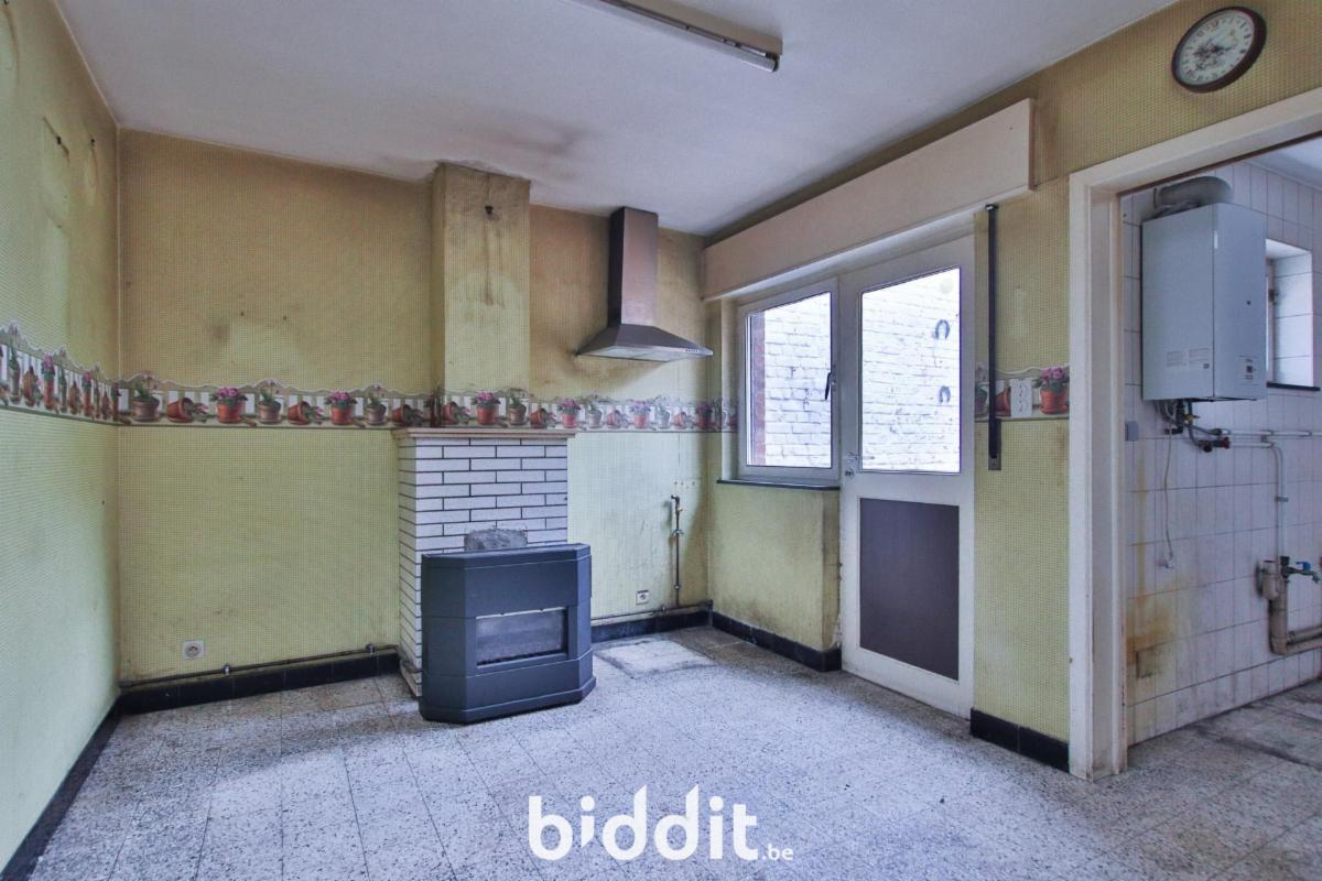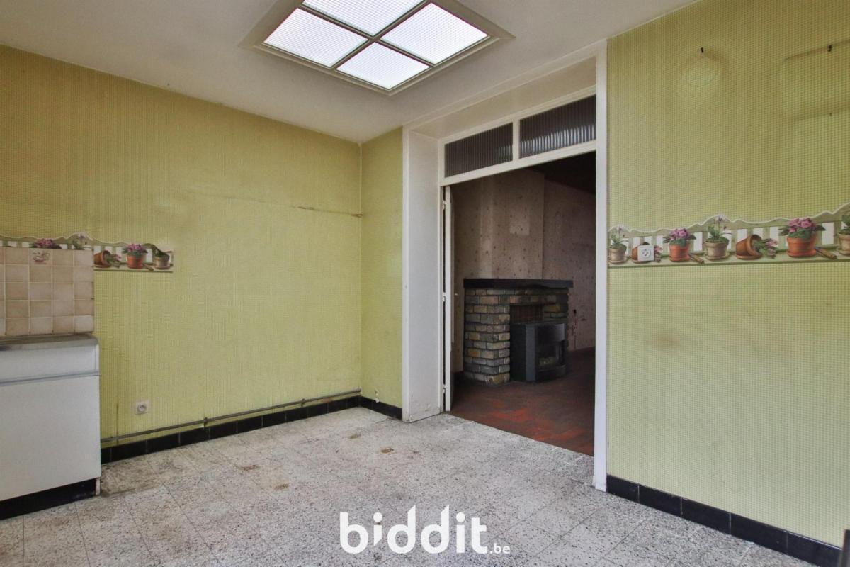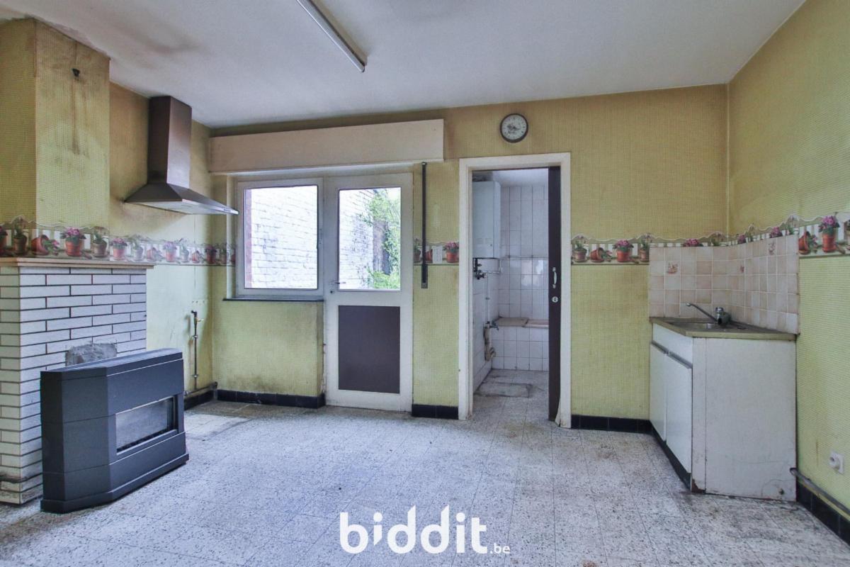 Cette maison d’habitation, à rénover, d’une surface habitable de 98m² (selon PEB), se compose comme suit : Au sous-sol : d’une cave (33m²) ; Au rez-de-chaussée : d’un hall d’entrée (5m²), d’un living (27m²), d’un living (27m²), d’une cuisine (12m²) et d’une salle de bain (6m²) ; Au 1er étage : d’un dégagement (1m²) et de deux chambres (14 et 18m²) ; Et enfin, au 2ème étage : d’un grenier (34m²). Ornée d’un jardin orienté à l’est. Chauffage au gaz (convecteurs). (PEB F – 445kWh/m².an –43448 kWh/an) (Électricité non-conforme -Compteur mono horaire).