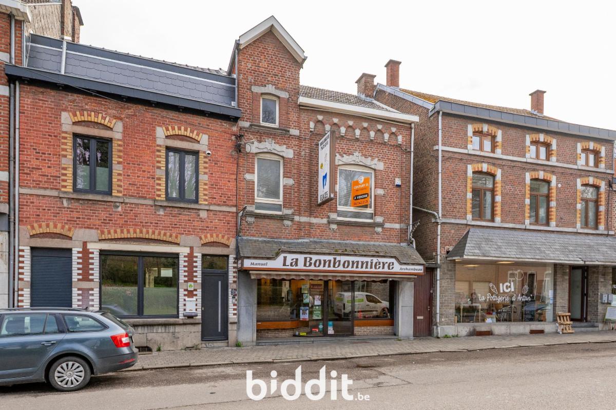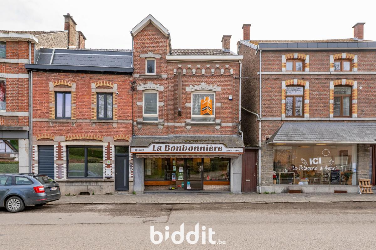 Immeuble mixte avec commerce, logement et atelier, situé rue du Centre 14 à Sprimont avec un accès arrière par la rue de l’Agneau.