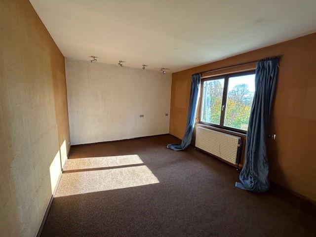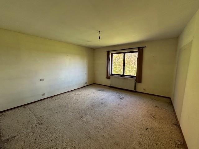 Rez-de-chaussée (+- 200 m²): hall d’entrée, vaste séjour carrelé avec feu ouvert (+- 50 m²) et poutres apparentes, cuisine à rénover, buanderie, wc avec lavabo, hall de nuit, trois chambres, bureau, salle de bains avec baignoire, bidet, wc, meuble double lavabo et salle de douche avec meuble lavabo.