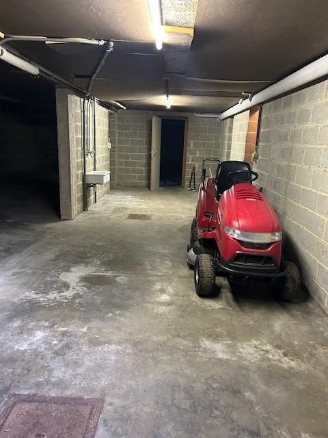 Sous-sol : double garage pour voitures (5) en parallèle avec deux portes d’entrée, deux caves rangement, cave à vin et vides ventilés (dont une chaufferie).