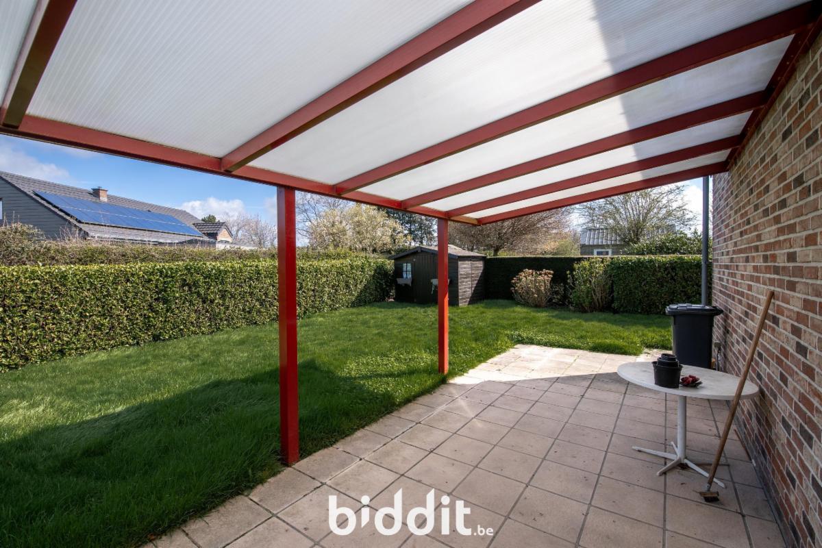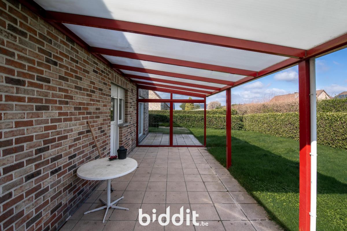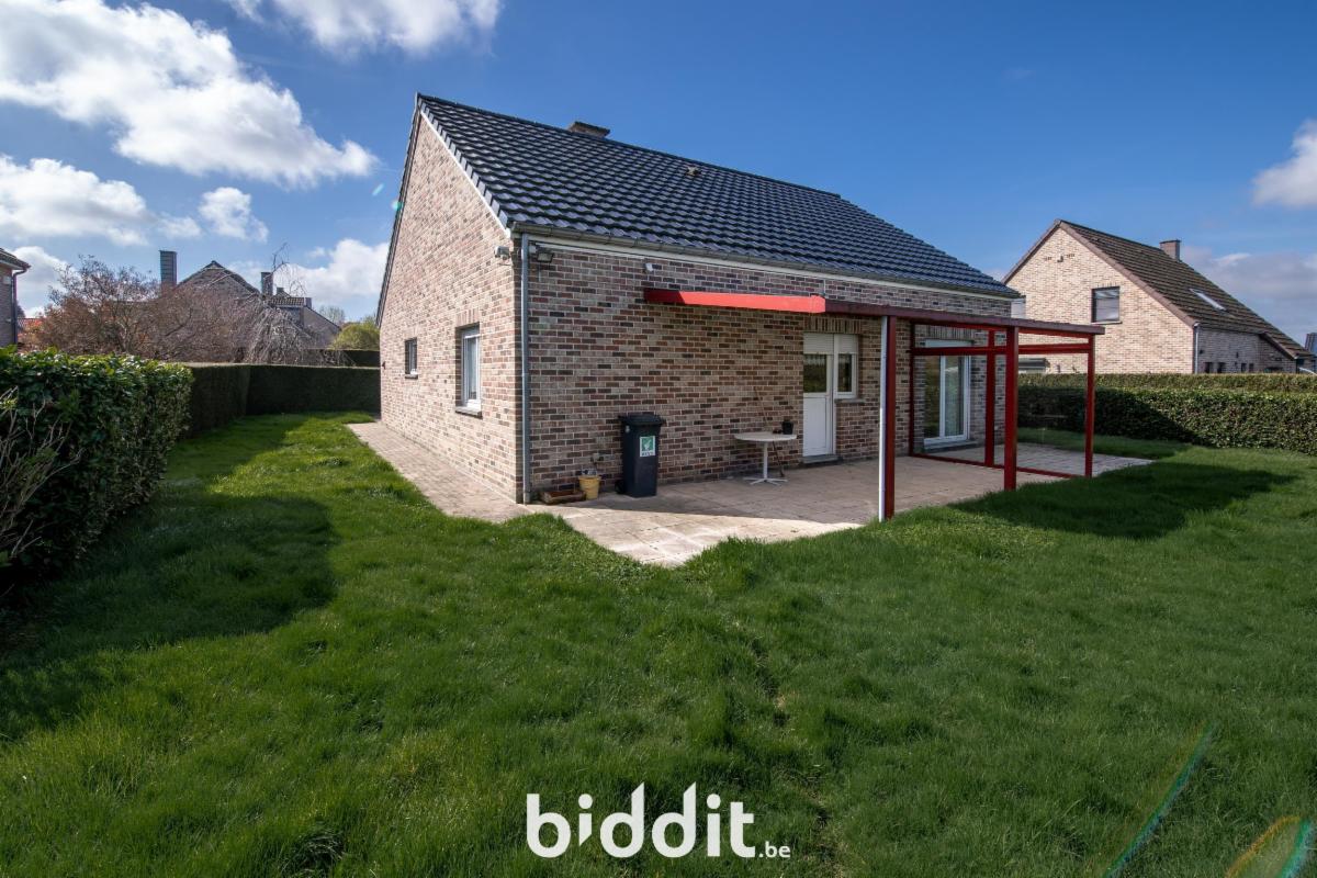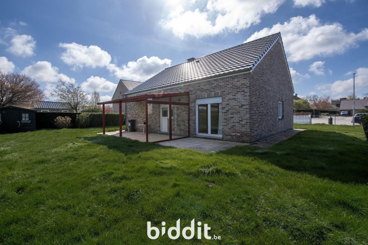 Charmant bungalow comprenant un hall d’entrée, un séjour, une cuisine, deux chambres, une salle de bain et un débarras.
