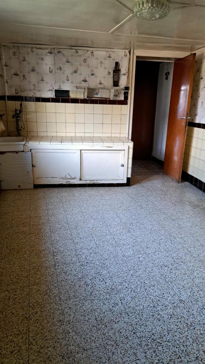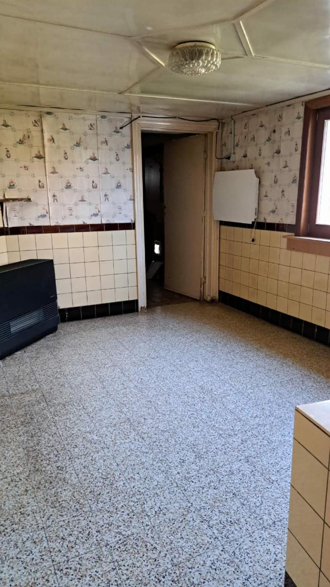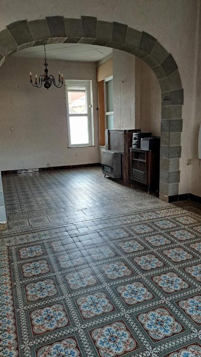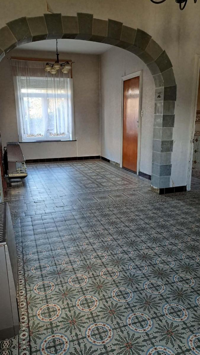 Ce bien se compose au rez : hall d'entrée, grand living, pièce de séjour, cuisine, salle de bains; étage : 3 chambres communicantes; grand grenier aménageable avec accès par escalier; caves. Cour et Jardin, Passage latéral. Garage. Poêles au gaz et radiateur électrique. Châssis DV en PVC avec volets. Panneaux photovoltaïques., Raccordement à l'égout. Superficie: 2 a 60 ca - RC: 505 €. Libre d'occupation