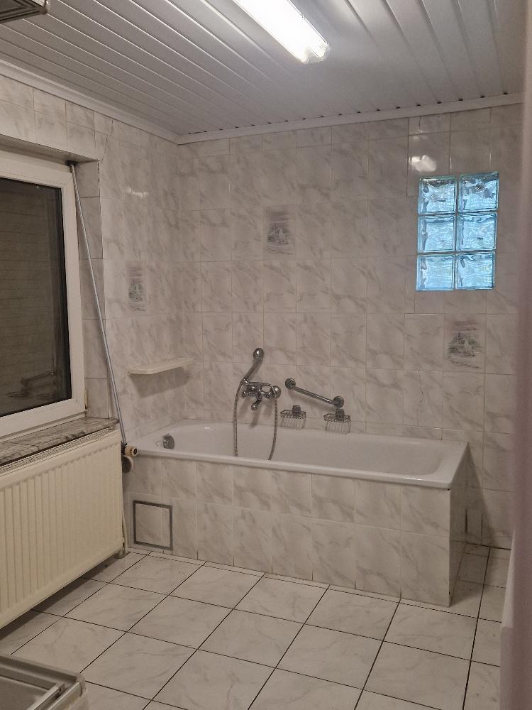 Rdc : Salon, salle à manger, cuisine, buanderie, salle de bain (baignoire + douche), WC.