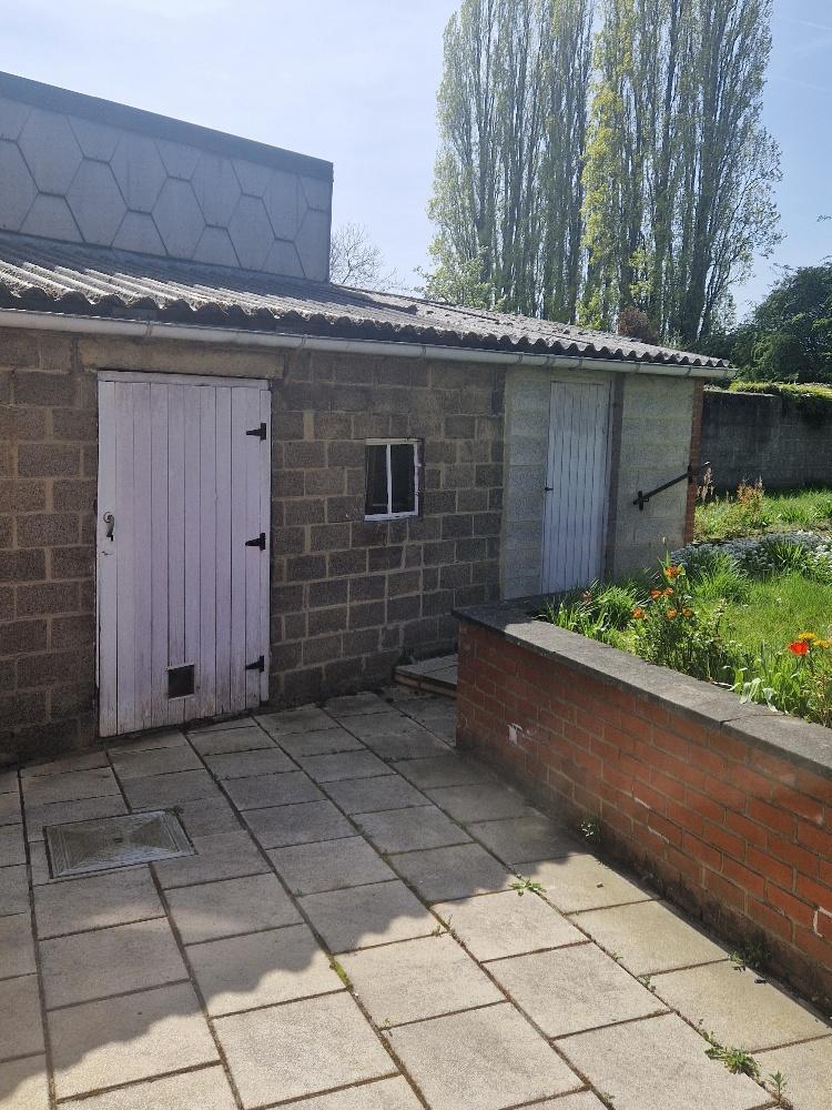 CC Gaz, Châssis PVC DV avec volets, grenier de rangement, jardin clôturé, remise, abris de jardin, passage latéral, places de parking à l'avant de la maison.