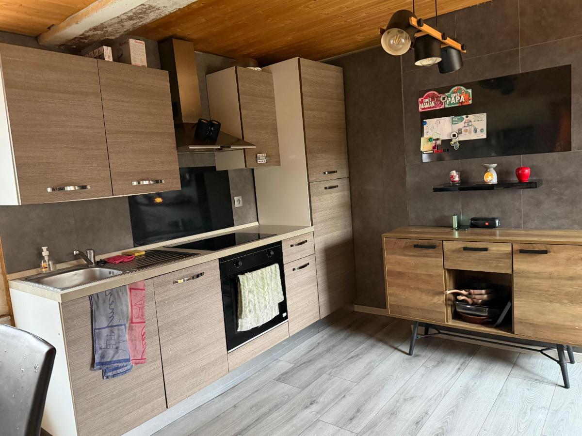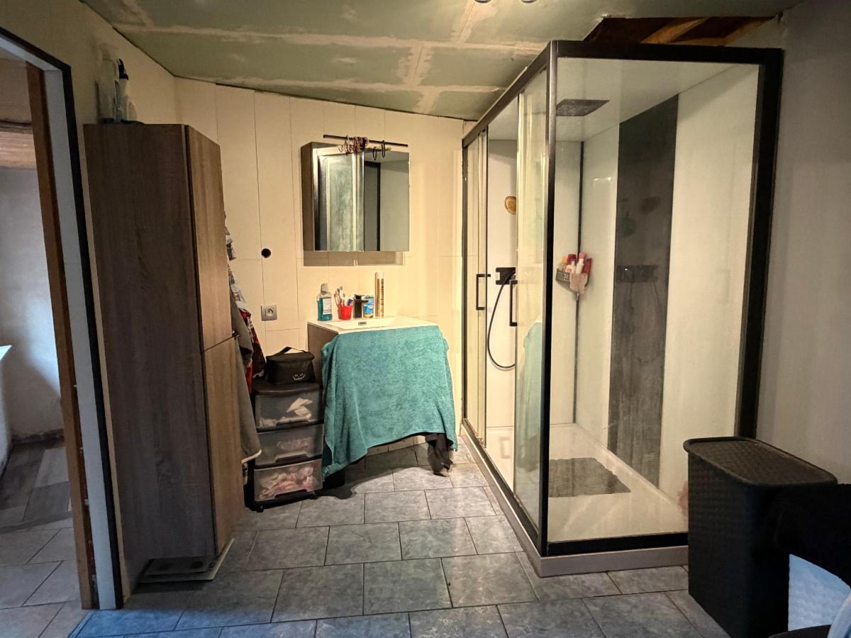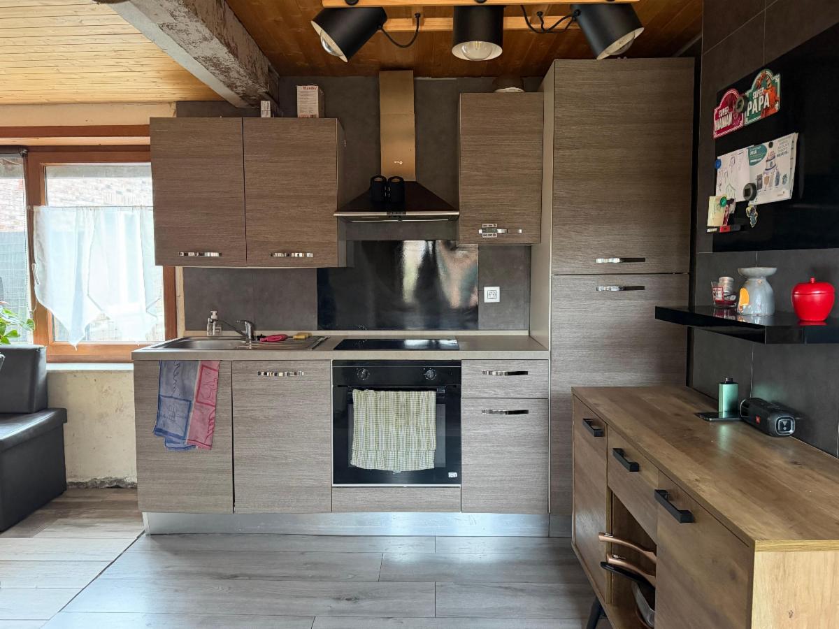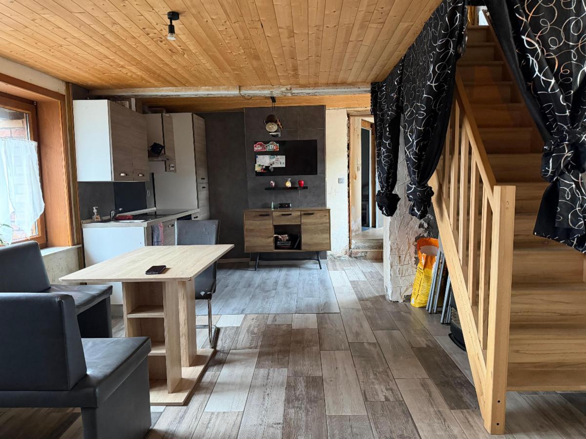 Rez: séjour et coin bureau, grande cuisine, SDB spacieuse, WC, grange (à rénover)