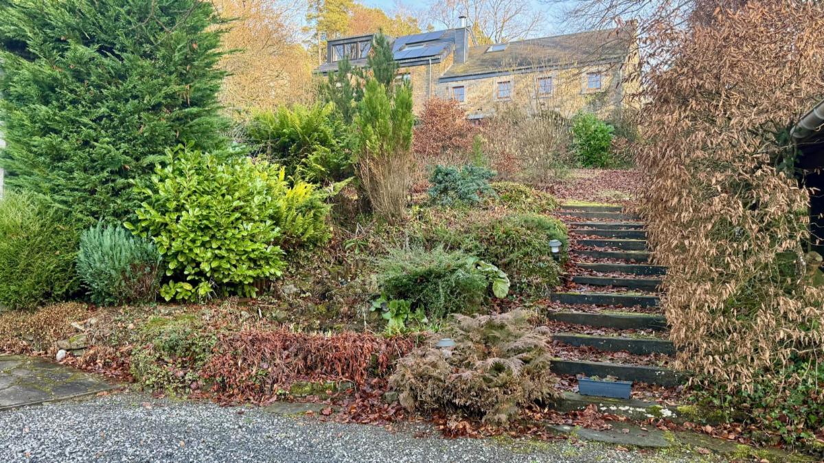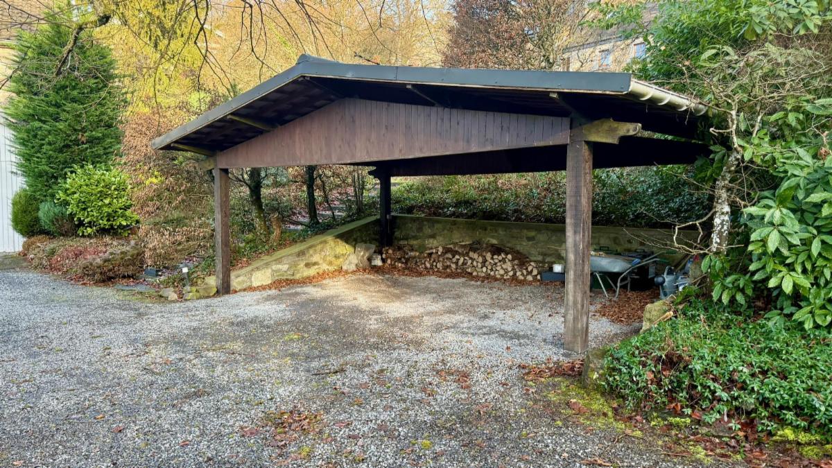 Extérieurs : L'accès se fait via une barrière en bois ouvrant sur un cadre verdoyant. La propriété dispose d'un car-port, d'un grand garage avec porte manuelle et d'un abri de jardin en dur. Le jardin entoure entièrement la maison, garantissant une intimité parfaite.