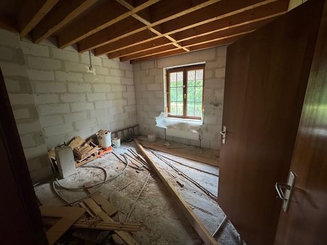 Au rez-de-chaussée : un grand garage, une grande cave en forme de L, une pièce avec kitchenette et douche ; au premier étage: hall d'entrée, un WC, une cuisine équipée, 3 chambres, une salle de bains, une salle à manger, un salon, une 4ème pièce en travaux; A l'extérieur: terrasse couverte, jardin, allée privée.
