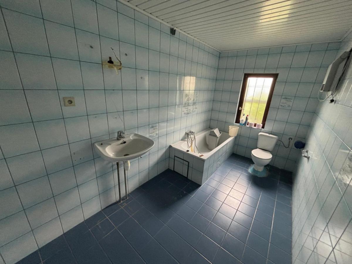 - Rez-de-chaussée : Entrée sur une pièce avant, une pièce cuisine, une pièce arrière, une salle d’eau (baignoire, wc et lavabo) + une grande pièce avec accès extérieur (« Véranda ») ;