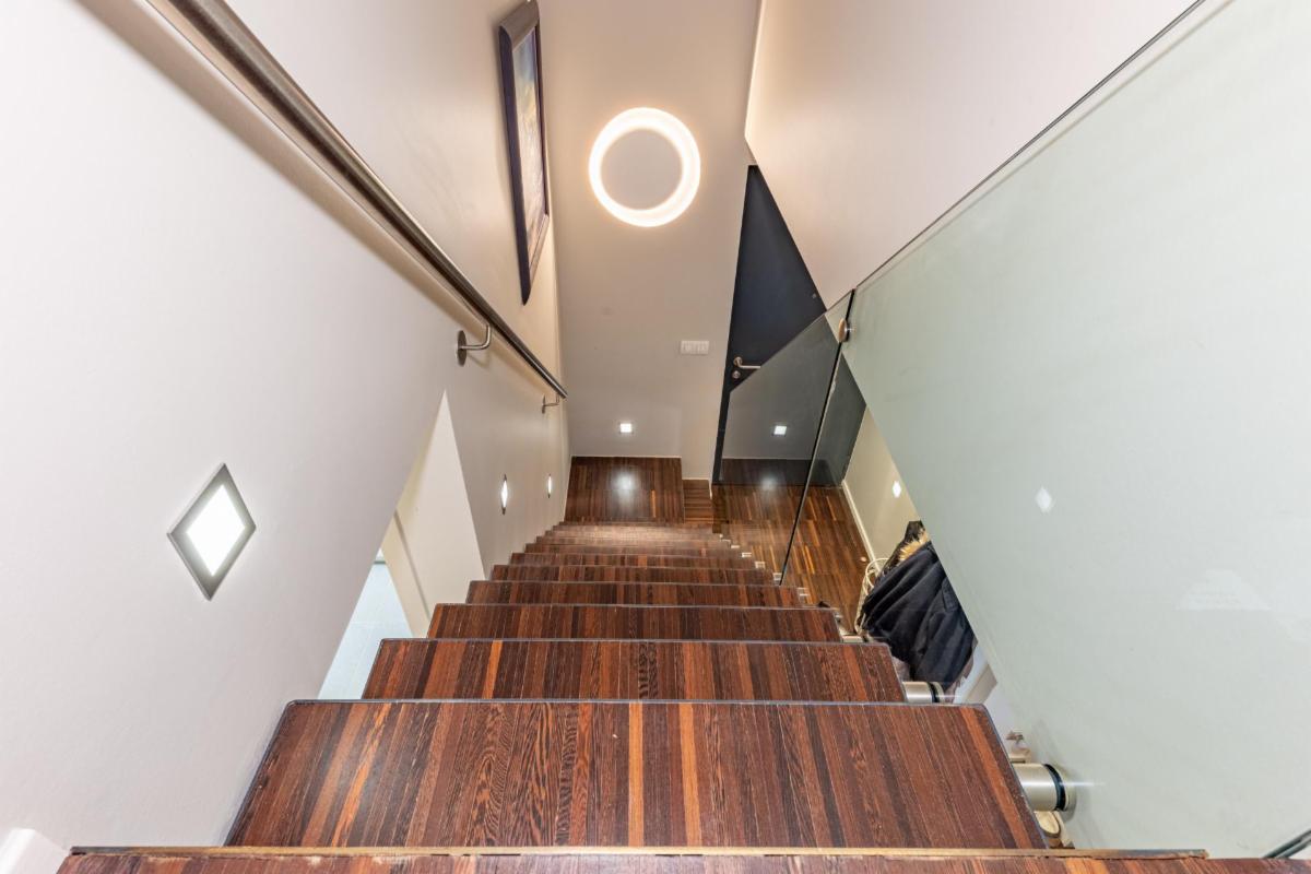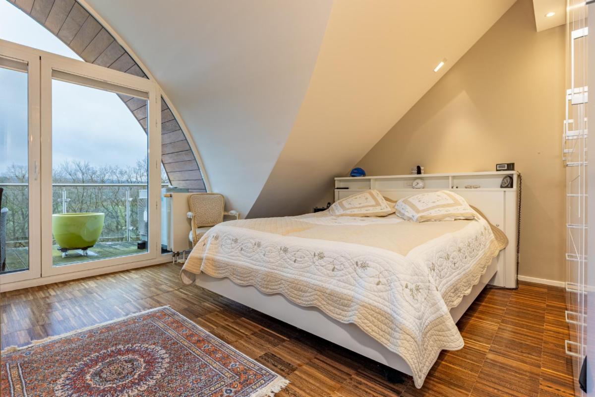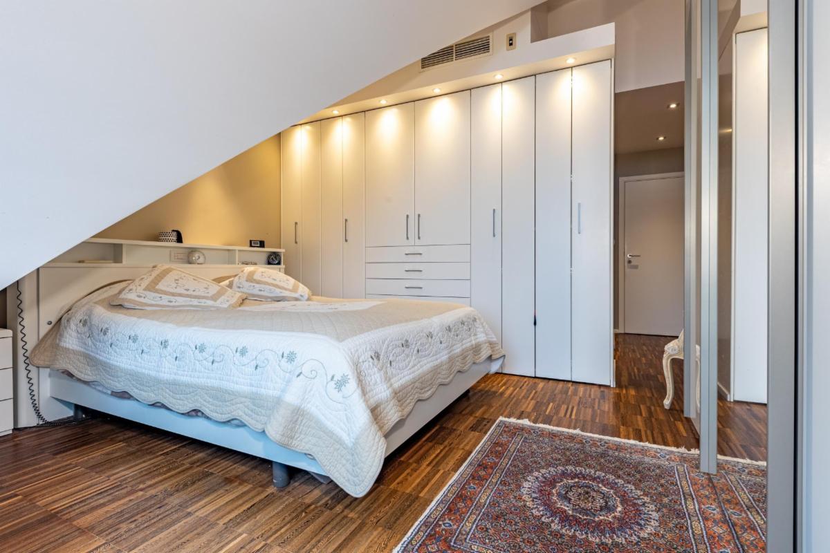 Le premier niveau accueille également la chambre principale, une salle de bain, un wc indépendant ainsi qu’un espace débarras/local technique parfaitement intégré. À l’étage, le duplex dévoile une magnifique pièce semi-ouverte accompagnée de sa salle d’eau et d’une chambre. Conçu comme un véritable espace « invités », ce niveau peut s’organiser en un élégant studio quasi indépendant comprenant salon ou bureau, chambre et salle d’eau, ou être aménagé en deux chambres distinctes.