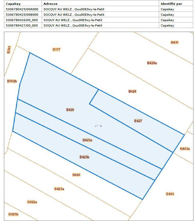 3. Soquy Au Welz, cadastrée section B, numéro 0426P0000, d'une superficie de 65 a 30 ca.