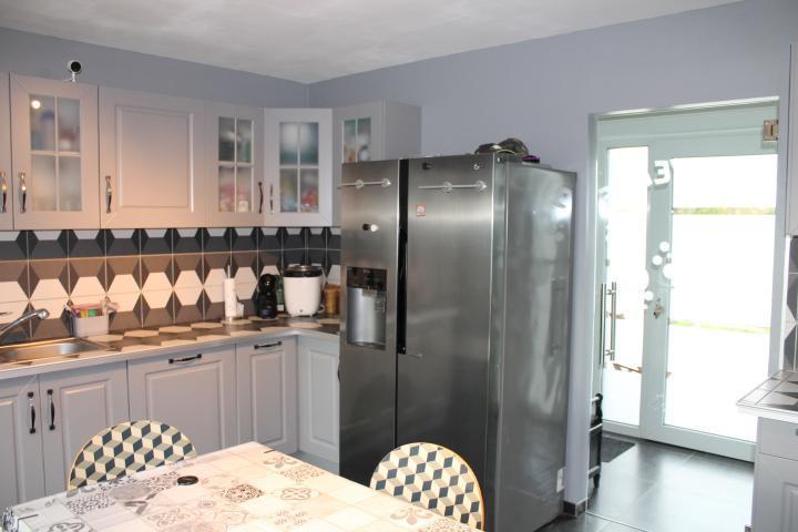 Rez: hall, vestiaire, wc, salon, salle à manger, cuisine équipée, salle de bains avec wc, salle de douche avec wc, buanderie et 2 chambres.
