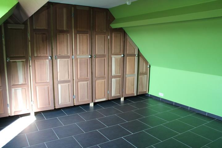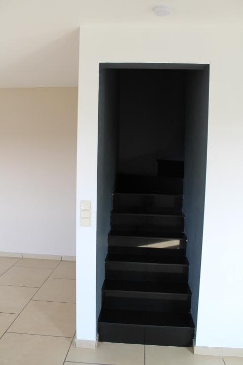 Rez: hall, wc, salon, salle à manger avec insert à bois, cuisine équipée, salle de douche avec wc et buanderie.