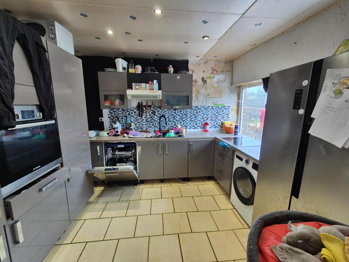 Ne font pas partie de la vente : le poêle à pellet, les meubles de cuisine et l'abri en bois à l'extérieur.
