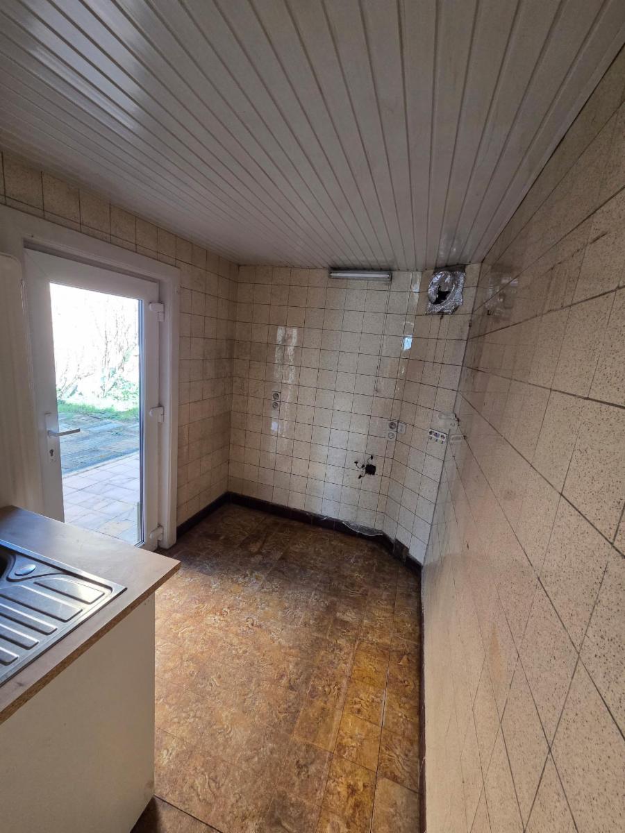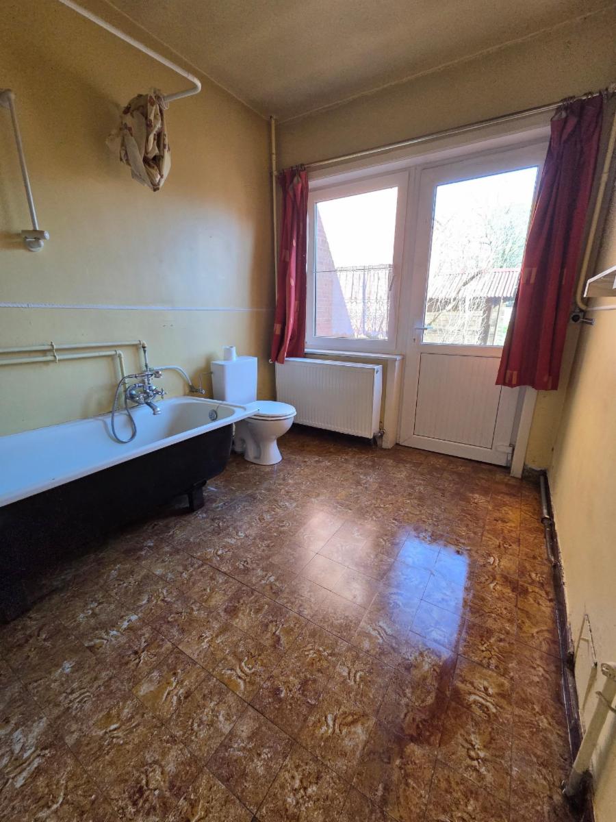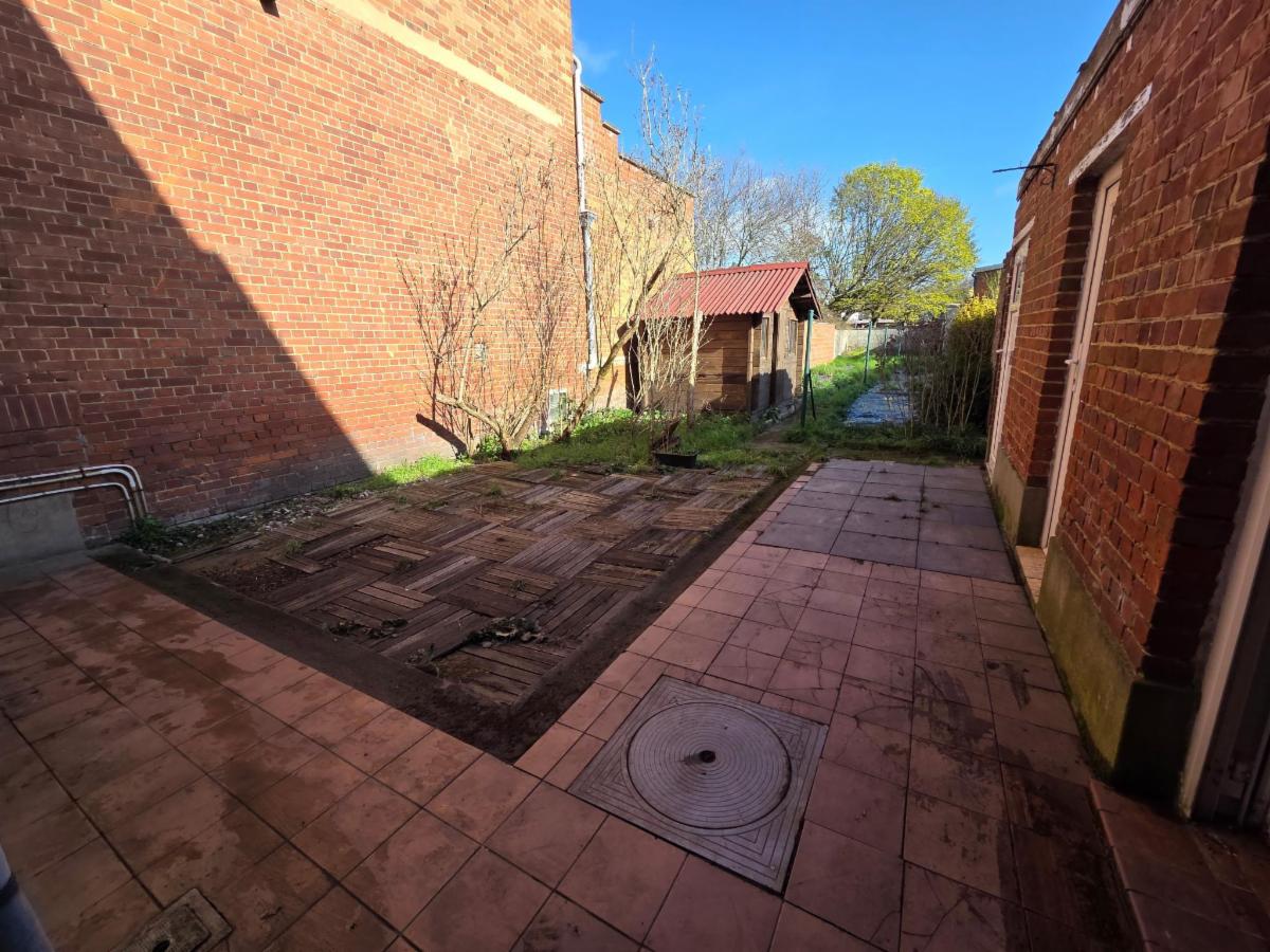• Rez-de-chaussée : Un living, un salon/salle à manger, 1 séjour, 1 cuisine, 1 salle de bains (avec baignoire, évier et WC), 1 WC extérieur, 1 terrasse, 1 jardin, 2 remises, ainsi qu’un passage latéral donnant accès à 2 garages à terminer au fond du jardin.