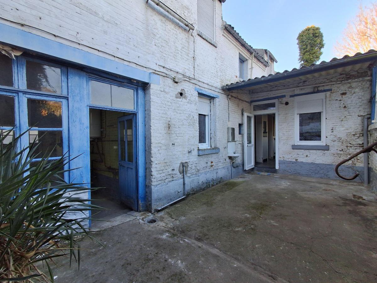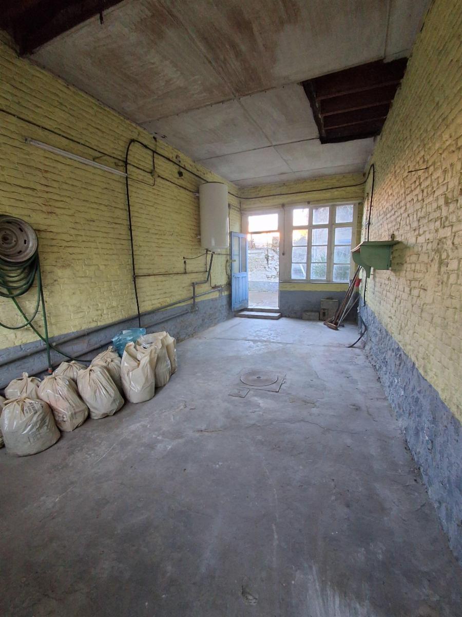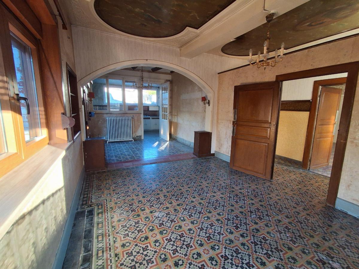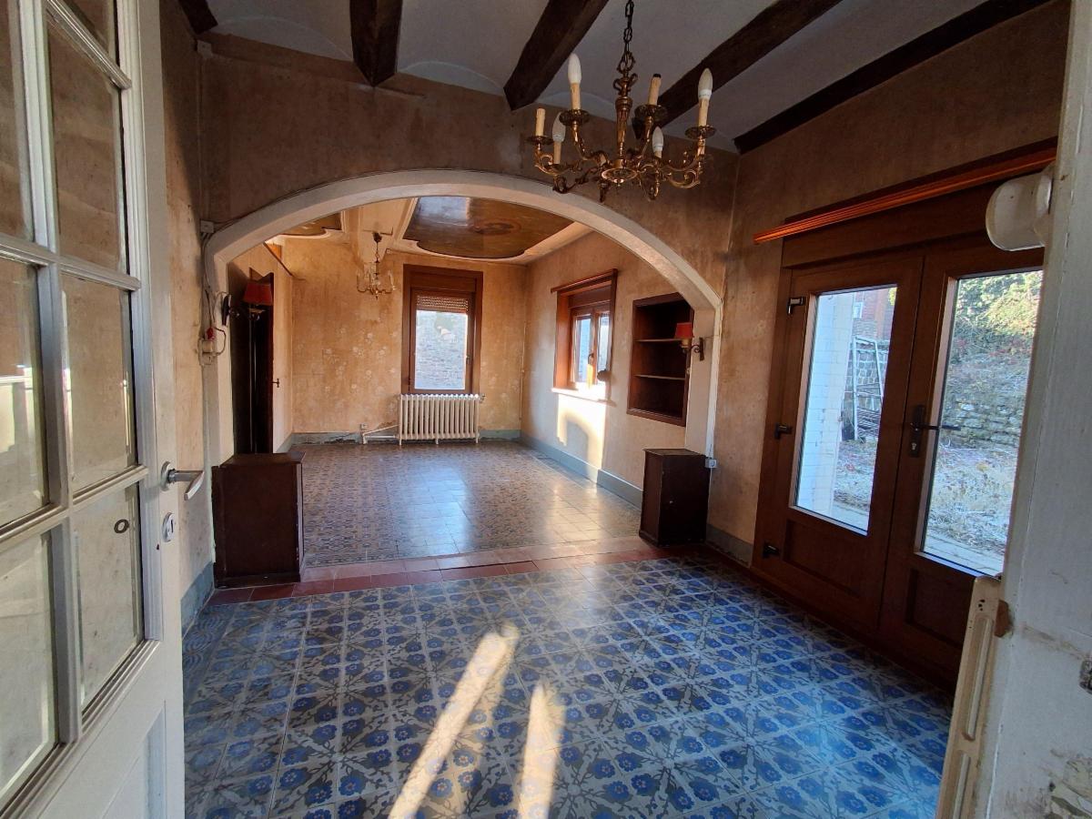 Maison d'habitation à rénover offrant de belles possibilités comprenant: SS: caves - Rez: hall d'entrée, salle à manger, cuisine, salon, salle de bain (évier, douche, w.c) - Etages : 5 chambres, hall (bureau) , salle de bain (baignoire, évier) - Grenier aménageable - Garage - passage latéral, remises, w.c. extérieur, cour et jardin. Chauffage central mazout - 4 ares 95 centiares R.C: 650 euros.