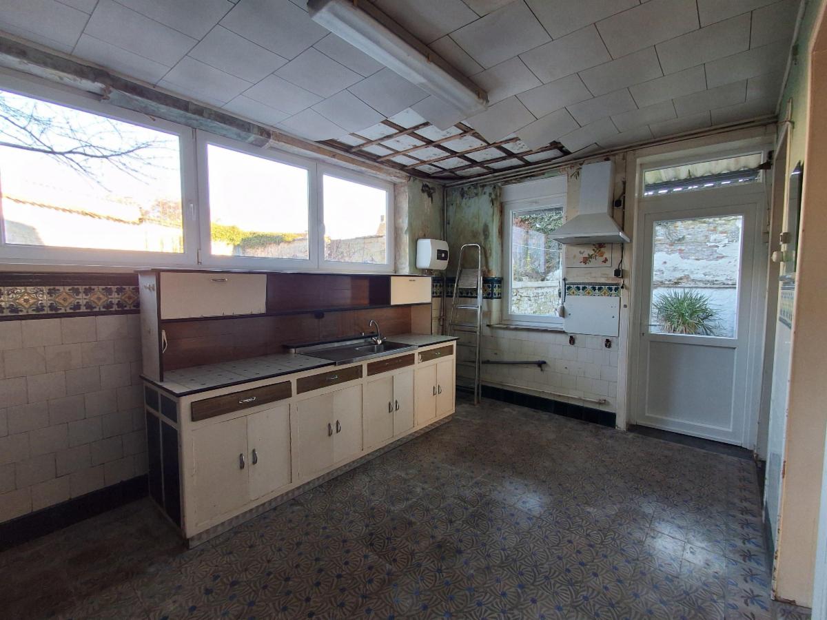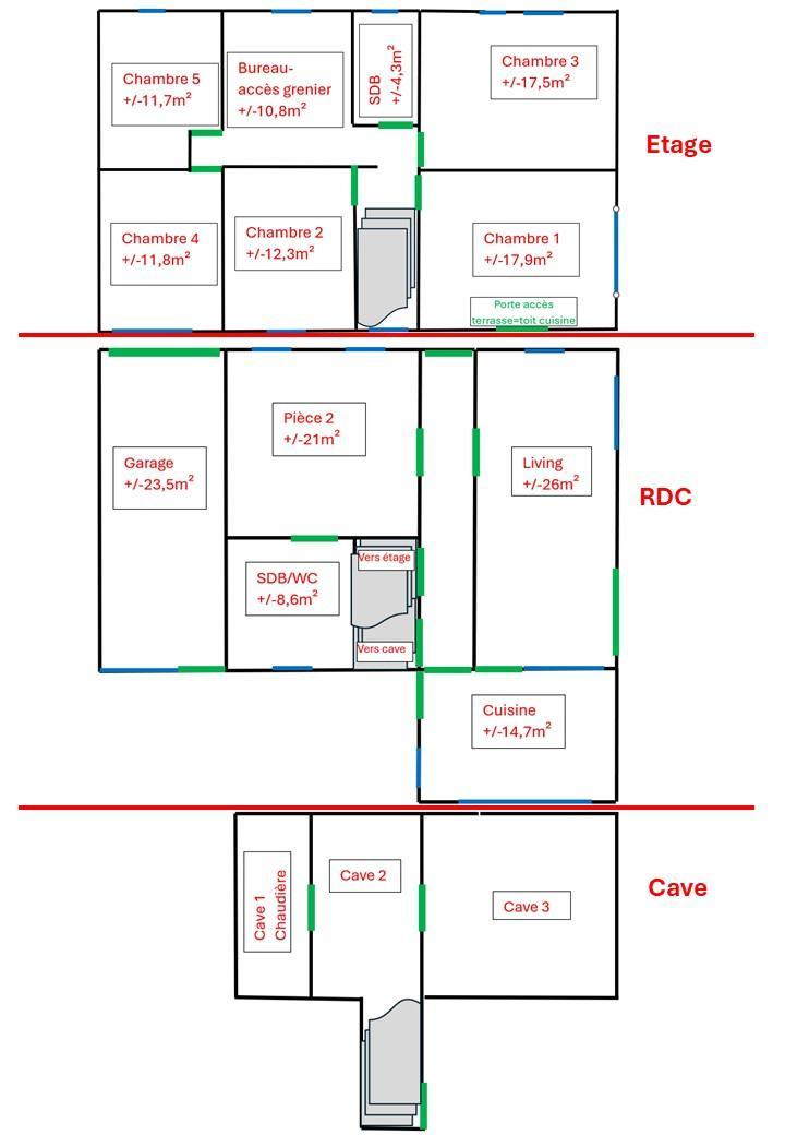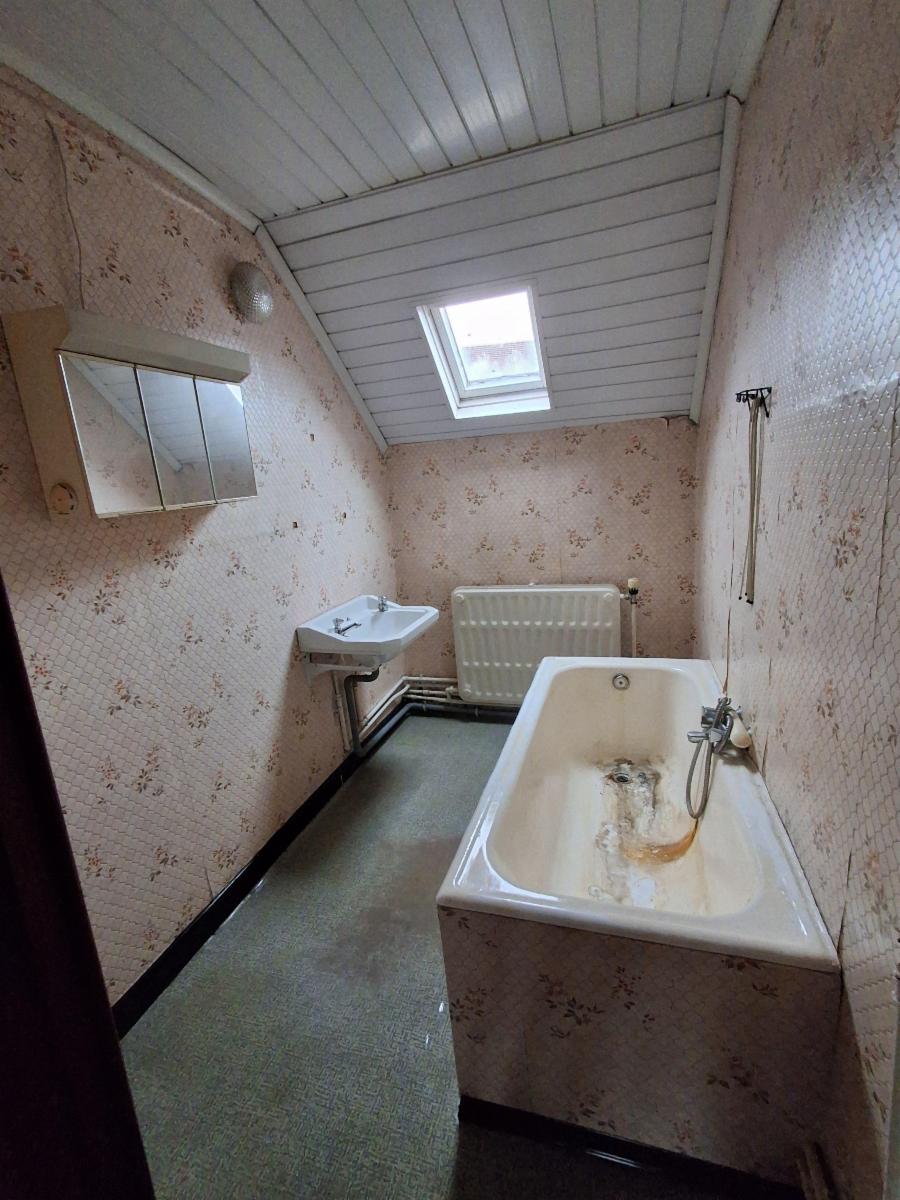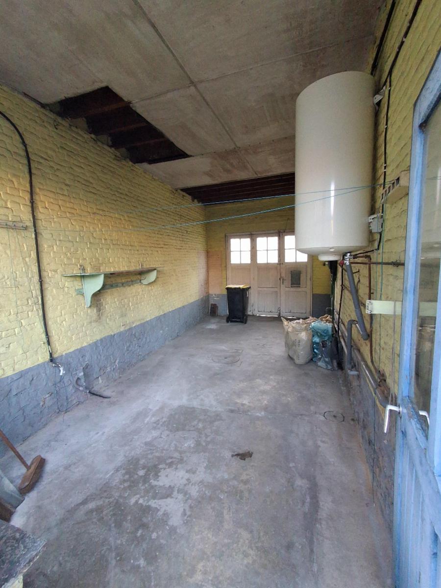 Maison d'habitation à rénover offrant de belles possibilités comprenant: SS: caves - Rez: hall d'entrée, salle à manger, cuisine, salon, salle de bain (évier, douche, w.c) - Etages : 5 chambres, hall (bureau) , salle de bain (baignoire, évier) - Grenier aménageable - Garage - passage latéral, remises, w.c. extérieur, cour et jardin. Chauffage central mazout - 4 ares 95 centiares R.C: 650 euros.