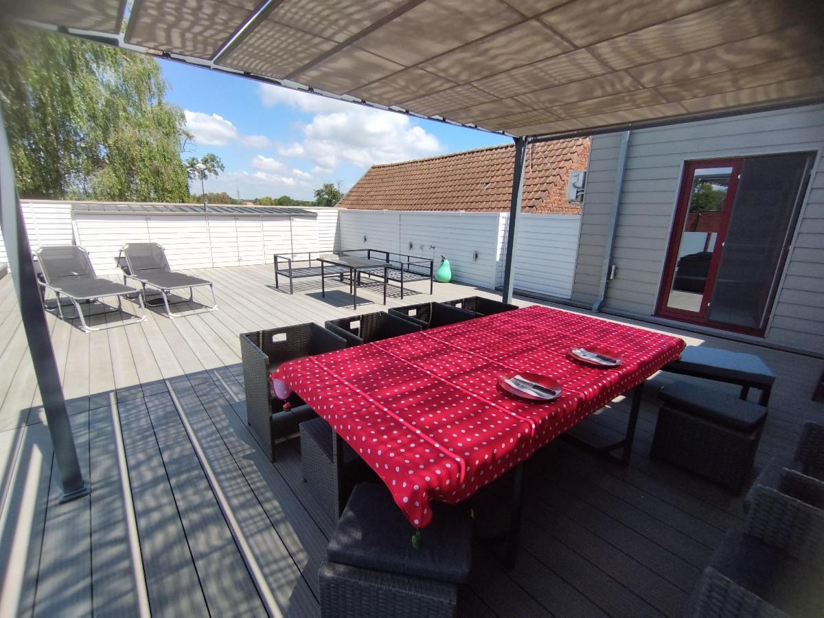 Grande terrasse (cabanon de jardin, pergola, éclairage, prise électrique et arrivée d’eau)