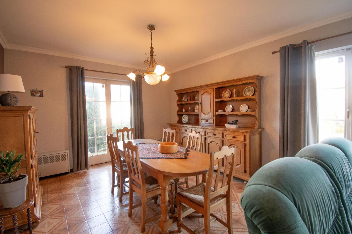- au rez de chaussée : un spacieux hall d'entrée avec water-closet, un coin salon et salle-à-manger, une cuisine, une salle de douche, quatre chambres,
