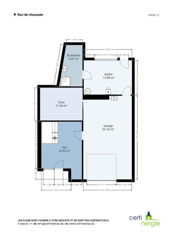 - Rez-de-chaussée (Niveau rue) : Un grand hall d'entrée accueillant desservant une cave, une buanderie, un garage spacieux et un atelier.