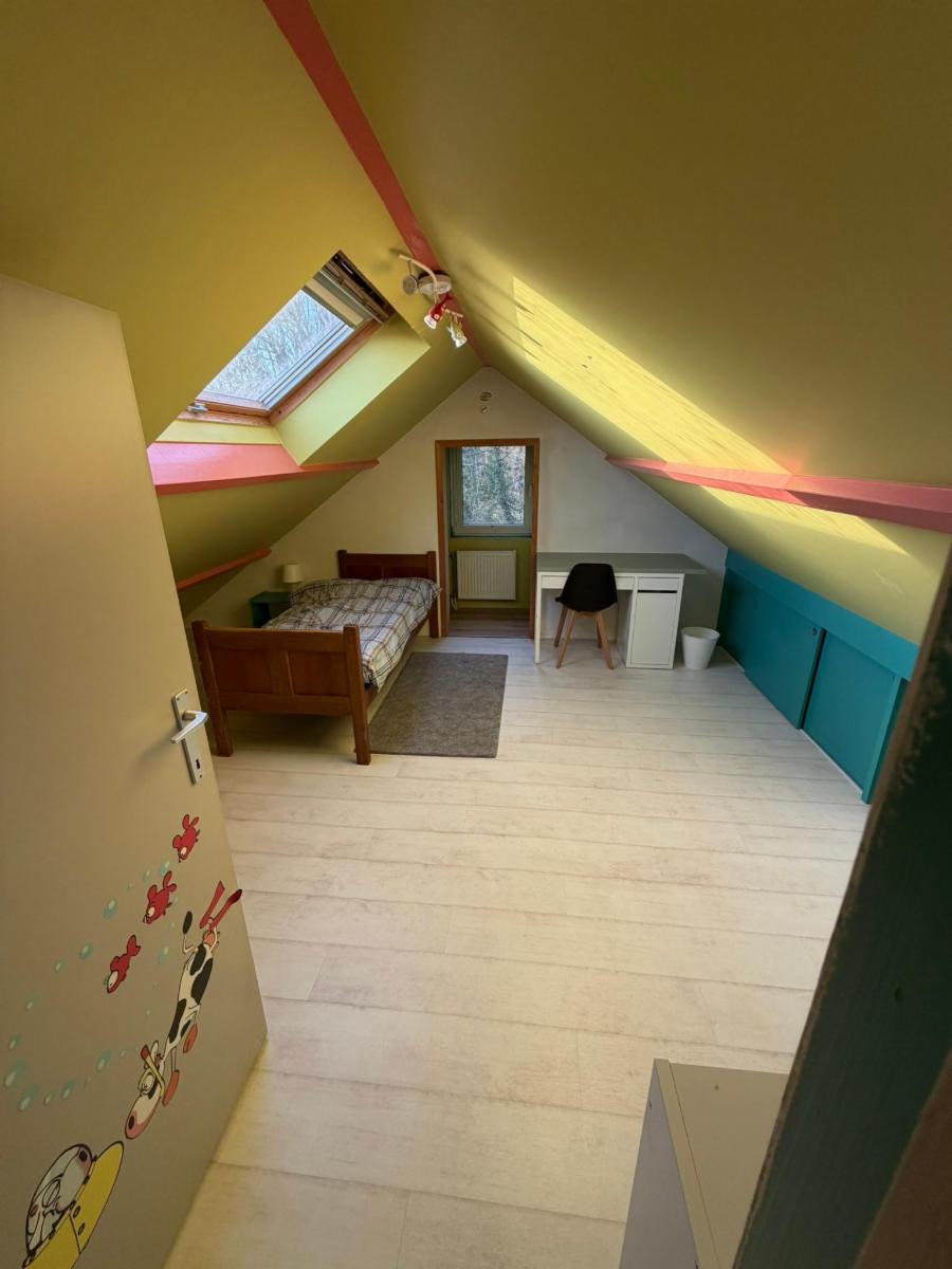 1er étage: hall de nuit avec coin salon, 2 chambres mansardées.